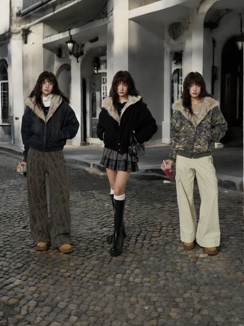 GKIKZ MOUNTAIN CARVING THICKENED FUR JACKET