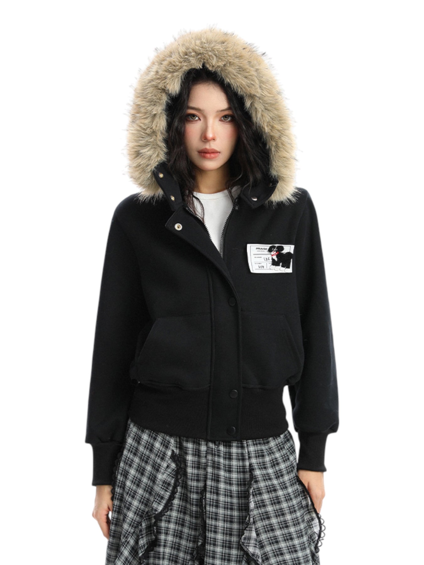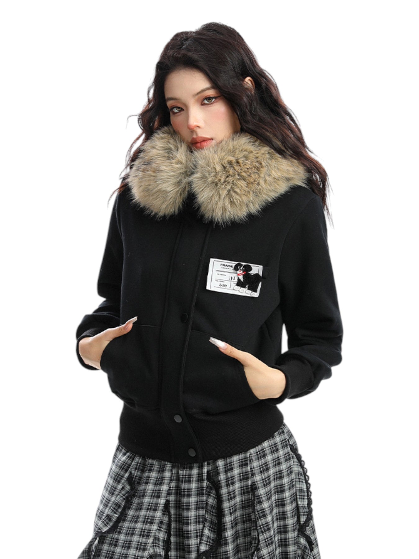 Crafted with a soft cotton-blend outer shell and lined with warm polyester, it features a detachable faux fur hood trim. The stitched chest tag detail adds an urban badge of attitude—whether zipped up for the cold or styled open with layers, this is not your average winter jacket. It’s rebellion, comfort, and cool—all in one.