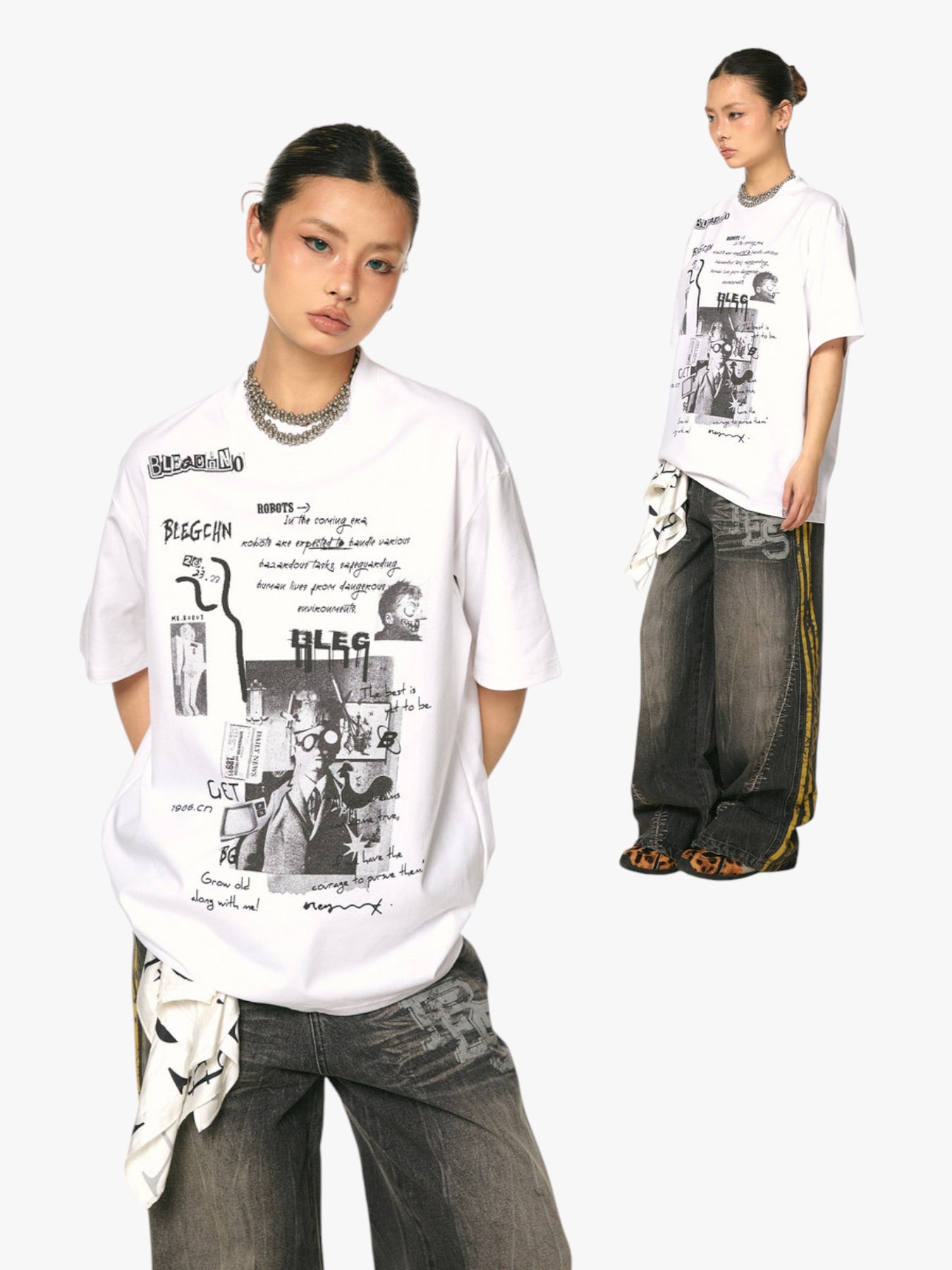 Break the mold with our abstract collage print cotton tees – where rebellious street art meets everyday comfort. Featuring an eye-catching all-over front graphic inspired by chaotic creativity and underground vibes, this tee adds an unapologetic attitude to any outfit.