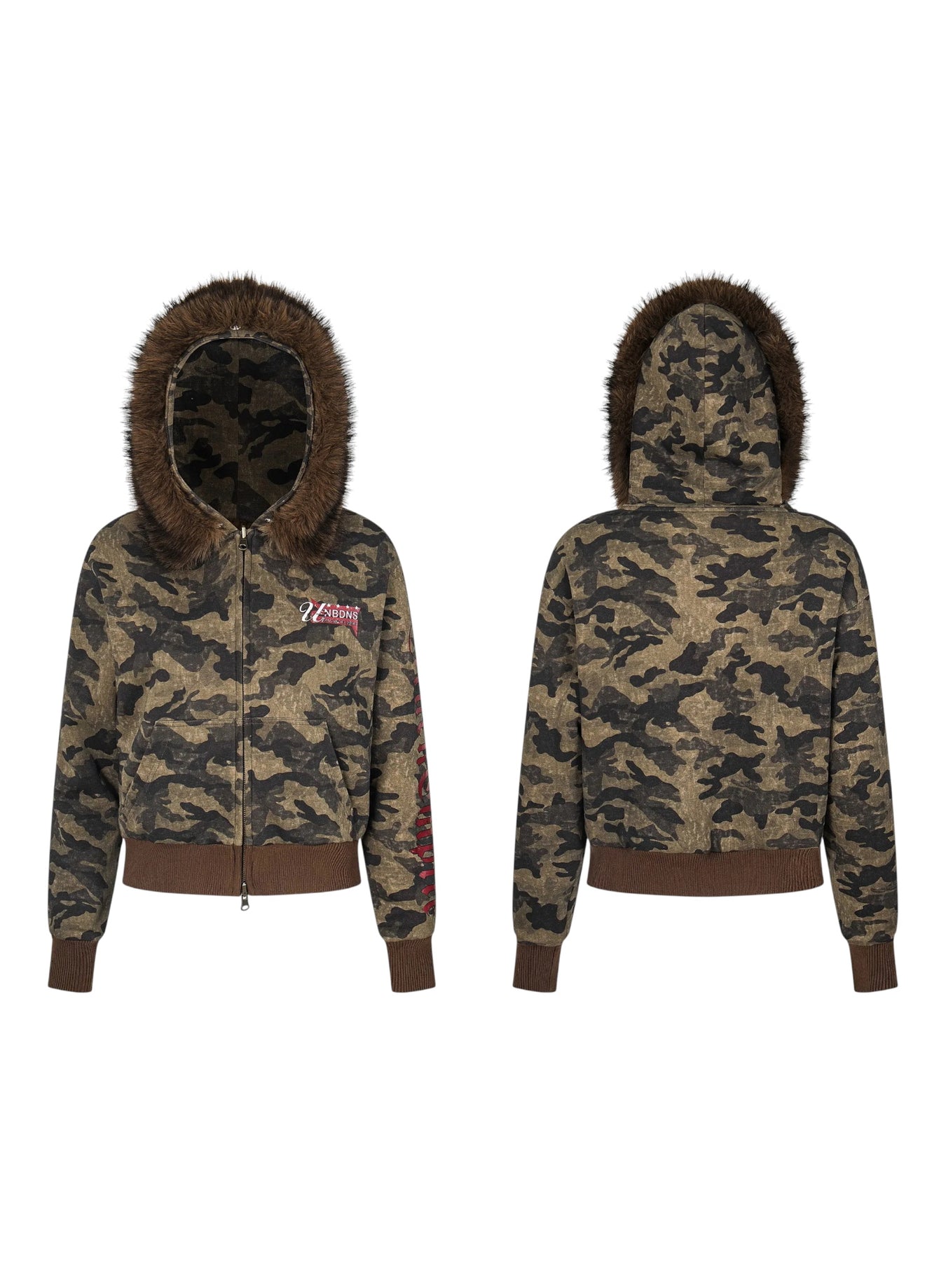 GKIKZ CAMOUFLAGE REVERSIBLE FAUX FUR HOODED JACKET