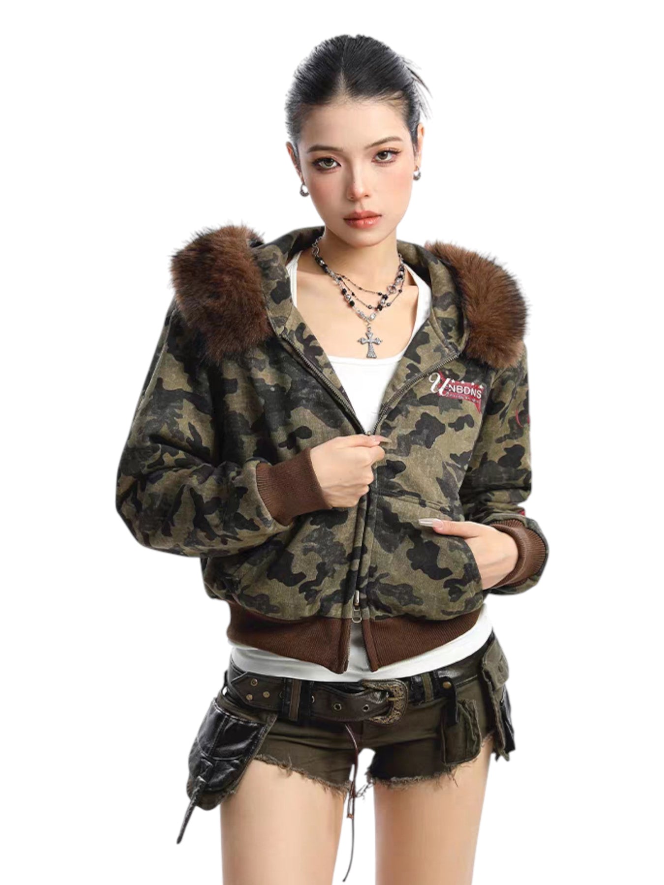 Double the vibe, double the style. This reversible camouflage jacket is a bold winter essential featuring detachable faux fur details, ultra-soft sherpa lining, and rugged outdoor aesthetics. On one side: a classic camo with a street-style edge. On the flip: cozy faux fur warmth that feels like a blanket on the go. Whether you’re pairing it with cargos or denim, it gives off main-character energy from every angle.