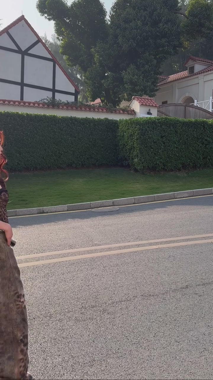 The relaxed fit and mid-rise waist create a flattering silhouette that's perfect for casual outings, creative workspaces, or weekend adventures. With their unique leopard print and artfully distressed details, these jeans are the ultimate expression of confident, eclectic style.