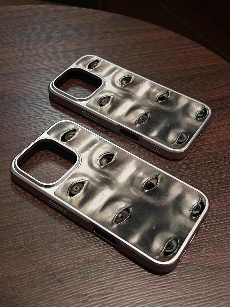Turn heads and keep eyes on you—literally. This features a stunning embossed design of six hyper-realistic eyes set against a sleek, metallic silver finish. Each eye appears to emerge from the surface, giving your phone an eerie, futuristic aesthetic straight out of a sci-fi art gallery. Perfect for lovers of avant-garde fashion, digital surrealism, and statement accessories, this case protects your phone while making it impossible to look away.