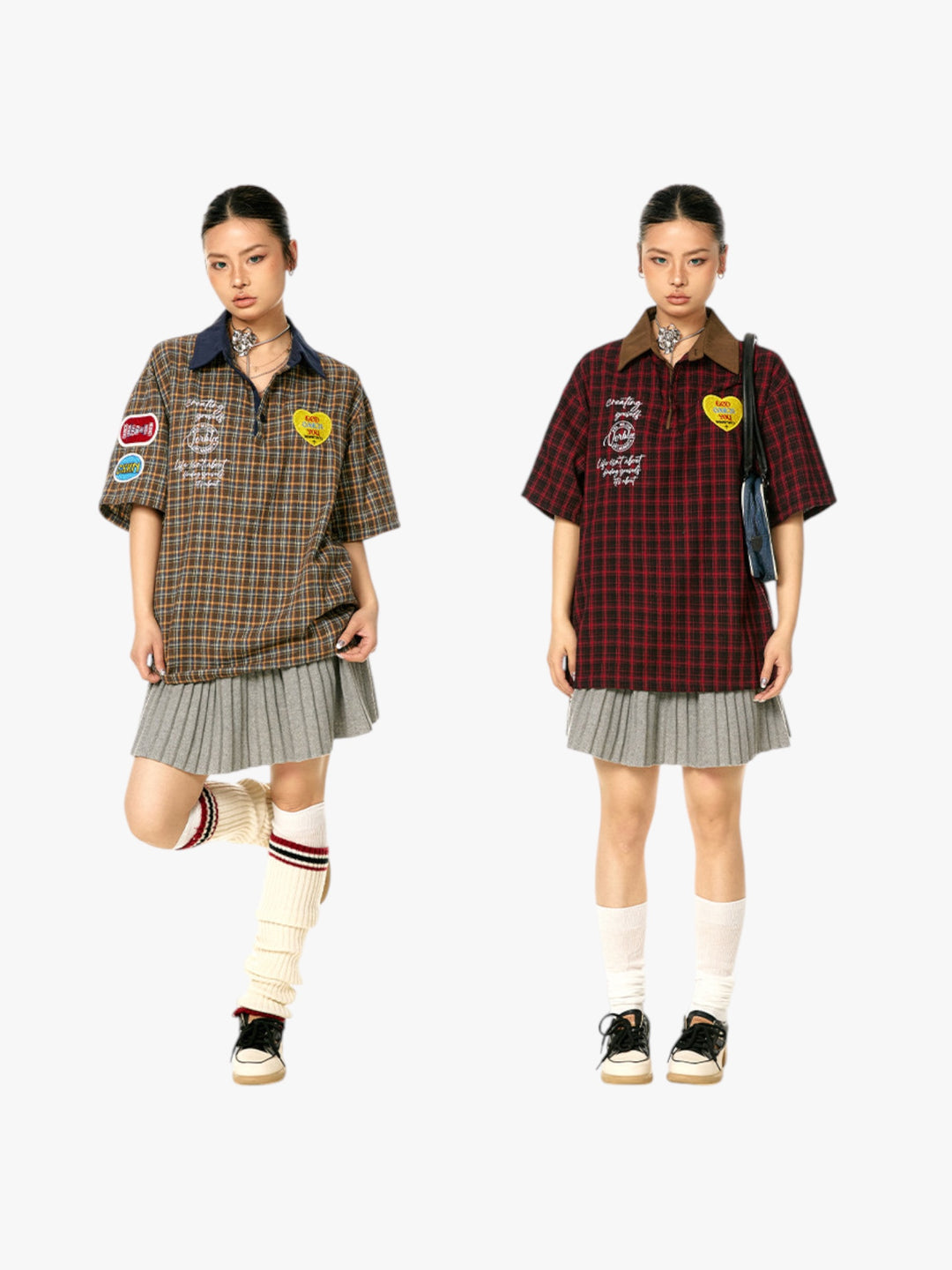 GKIKZ VINTAGE PLAID PATCH POLO TEES