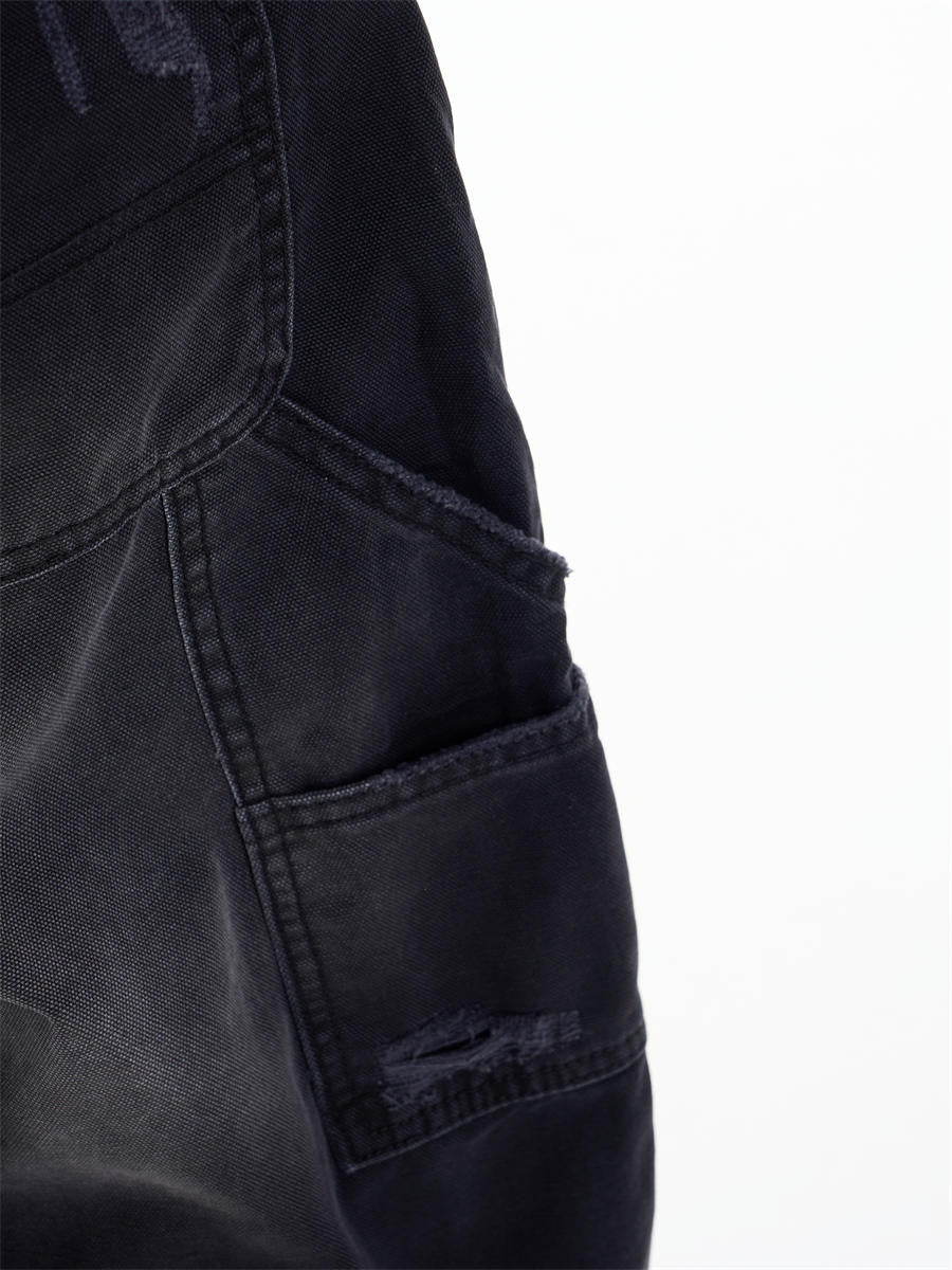Features: Side utility loop, large rear patch pockets, distressed rips on thigh and knee