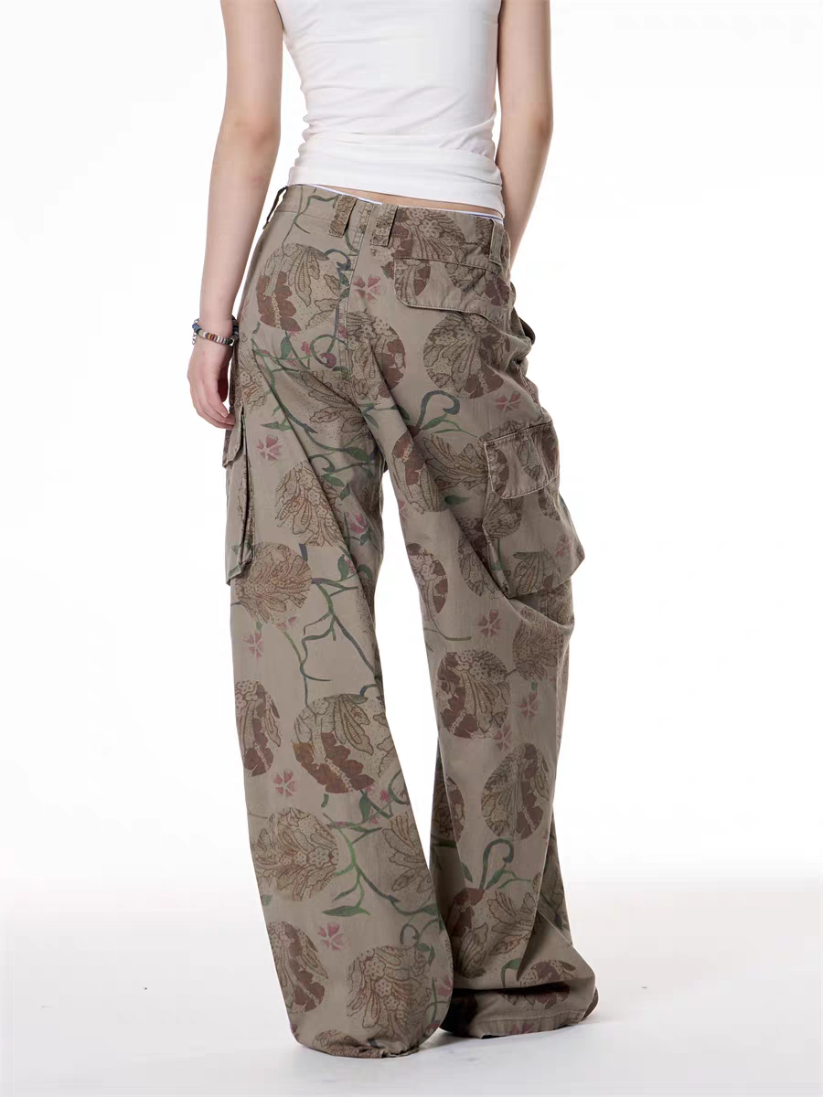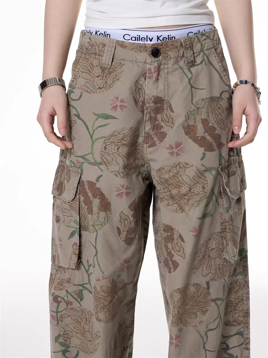 Bloom with attitude. The Botanic Rage Cargo Pants fuse vintage floral prints with a modern grunge silhouette. Designed with a relaxed wide-leg cut and oversized utility pockets, these pants are made to stomp through soft vibes with a heavy foot. Pair it with a crop top and heavy boots, or throw on a bomber to contrast the calm chaos. Nature just got loud.