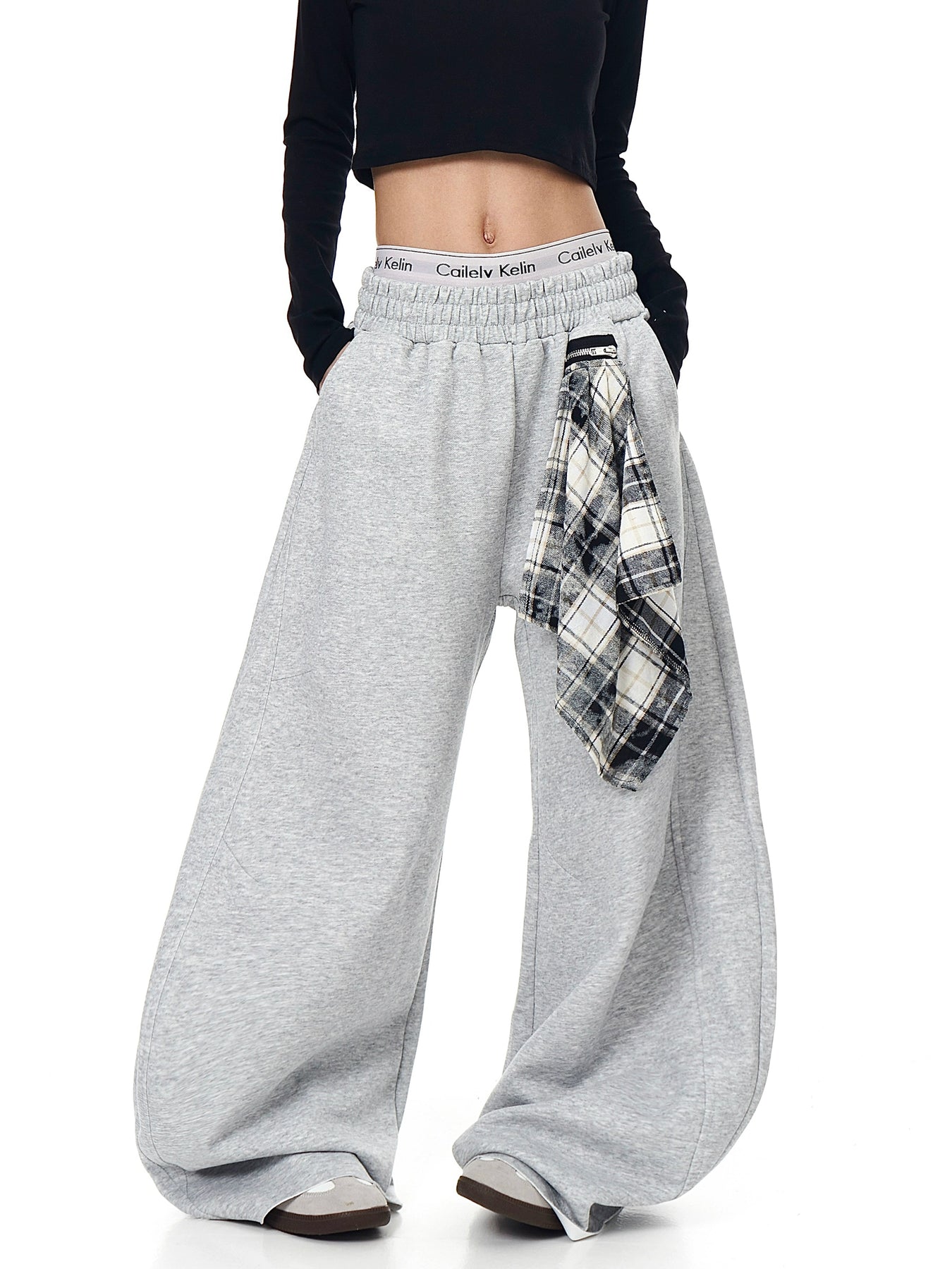 Slip into a bold mix of streetwear ease and layered style with these ultra-comfortable wide-leg sweatpants. Made from a premium cotton-blend fleece, these pants come in a heather grey tone and feature a detachable plaid scarf detail at the waistband for a grungy edge. The elastic waistband ensures a snug fit while offering ultimate comfort, and the wide-leg silhouette gives maximum movement and a statement-making drape.