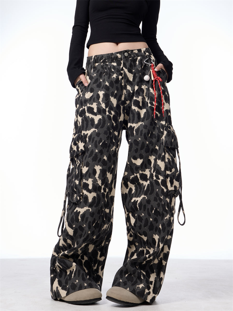 GKIKZ LEOPARD INTRUSION BAGGY CARGO PANTS