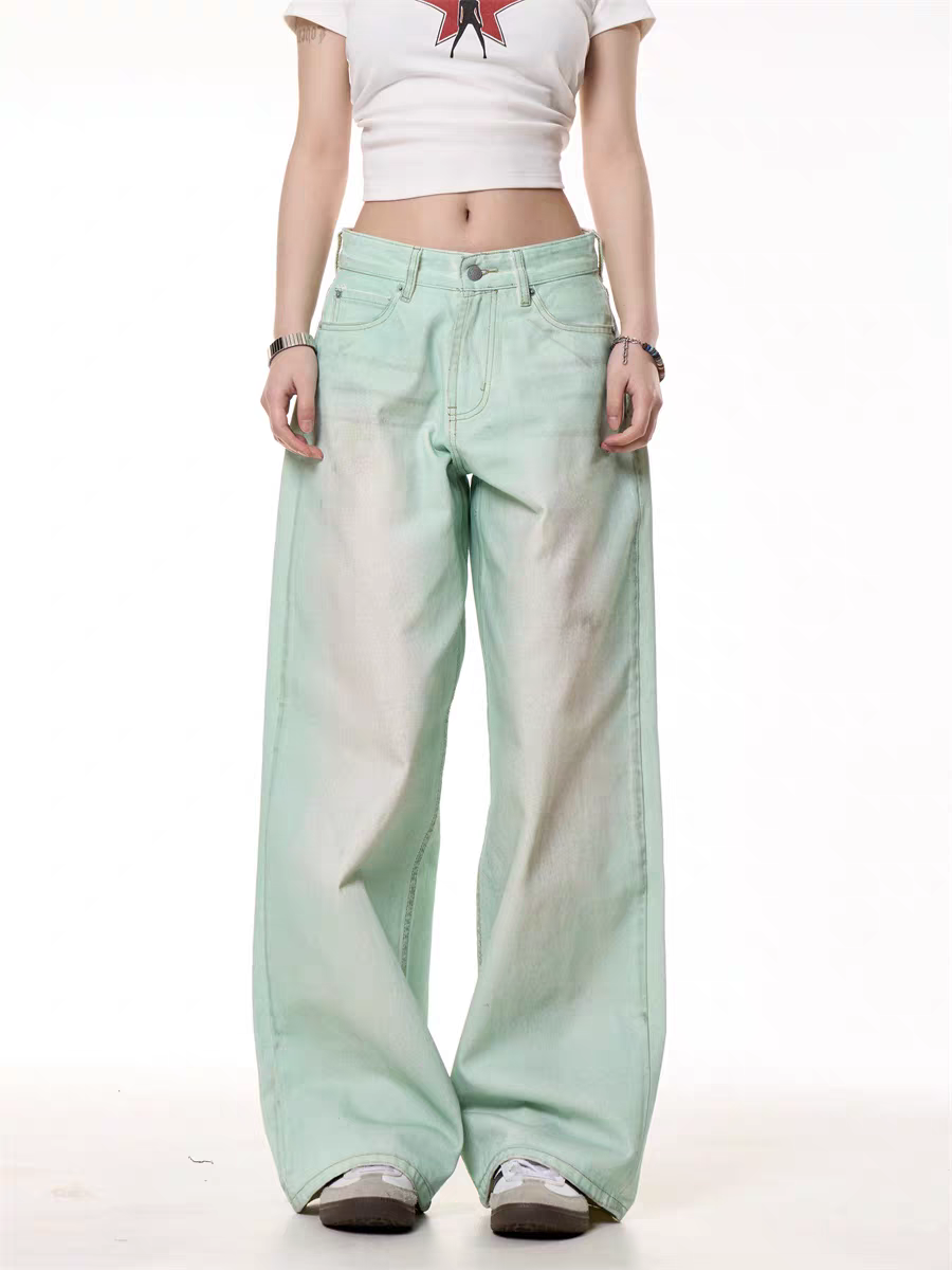 Add a splash of cool freshness to your outfit with these mint-washed wide-leg jeans. Designed to turn heads, these pants blend soft pastel tones with a relaxed streetwear vibe. The washed effect adds a vintage edge, while the high-waisted, loose fit brings comfort and attitude.