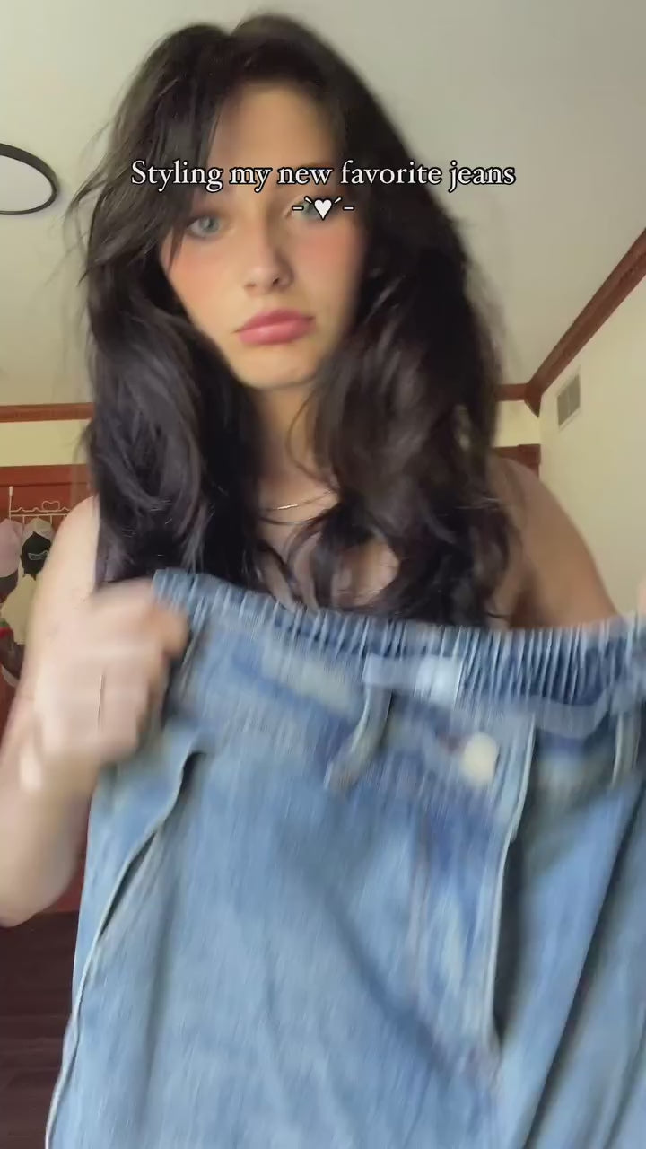These are wide-legged denim jeans featuring a faded blue wash with a striking design element. The jeans have bold red vertical stripes running along the outer seams, enhancing their unique style. The high-waisted cut offers a classic fit, while the elastic detail at the back of the waistband ensures comfort. Perfect for making a fashion statement, these jeans blend retro and contemporary styles seamlessly.