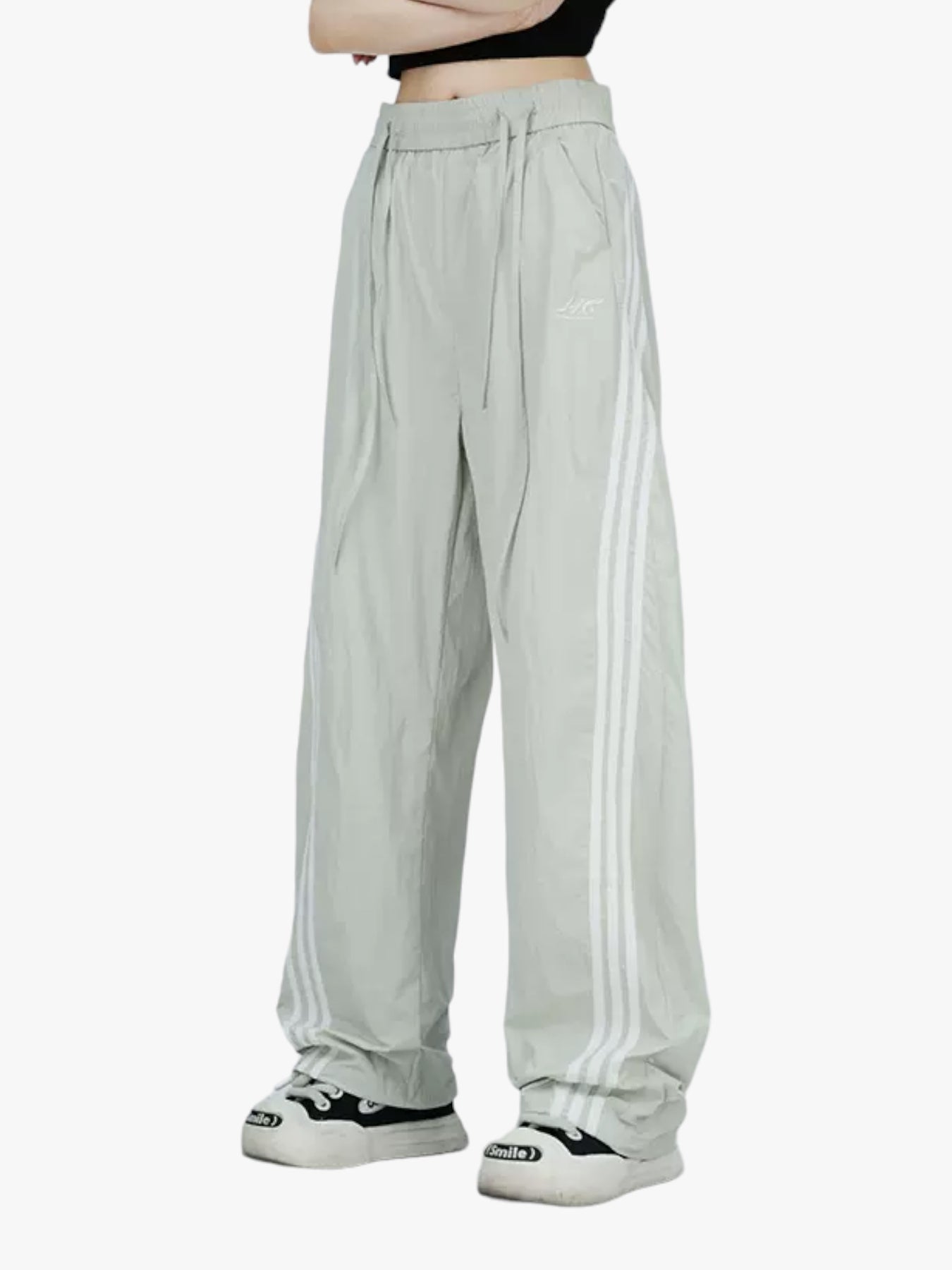 [25SS RESTOCKS] GKIKZ DUAL LACES TRI-STRIPE CURVE WIDE LEG PANTS