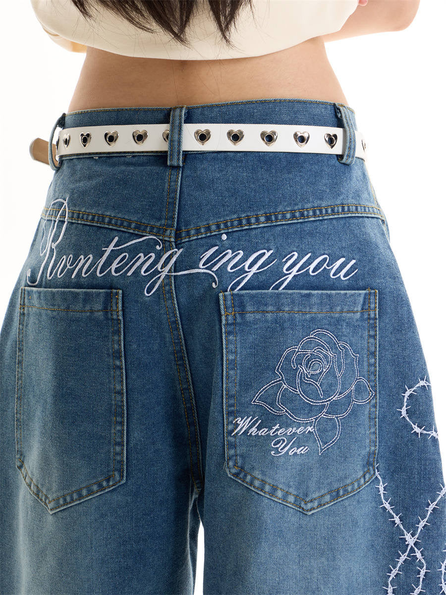 GKIKZ ENTANGLE ROSE WIDE-LEG DENIM