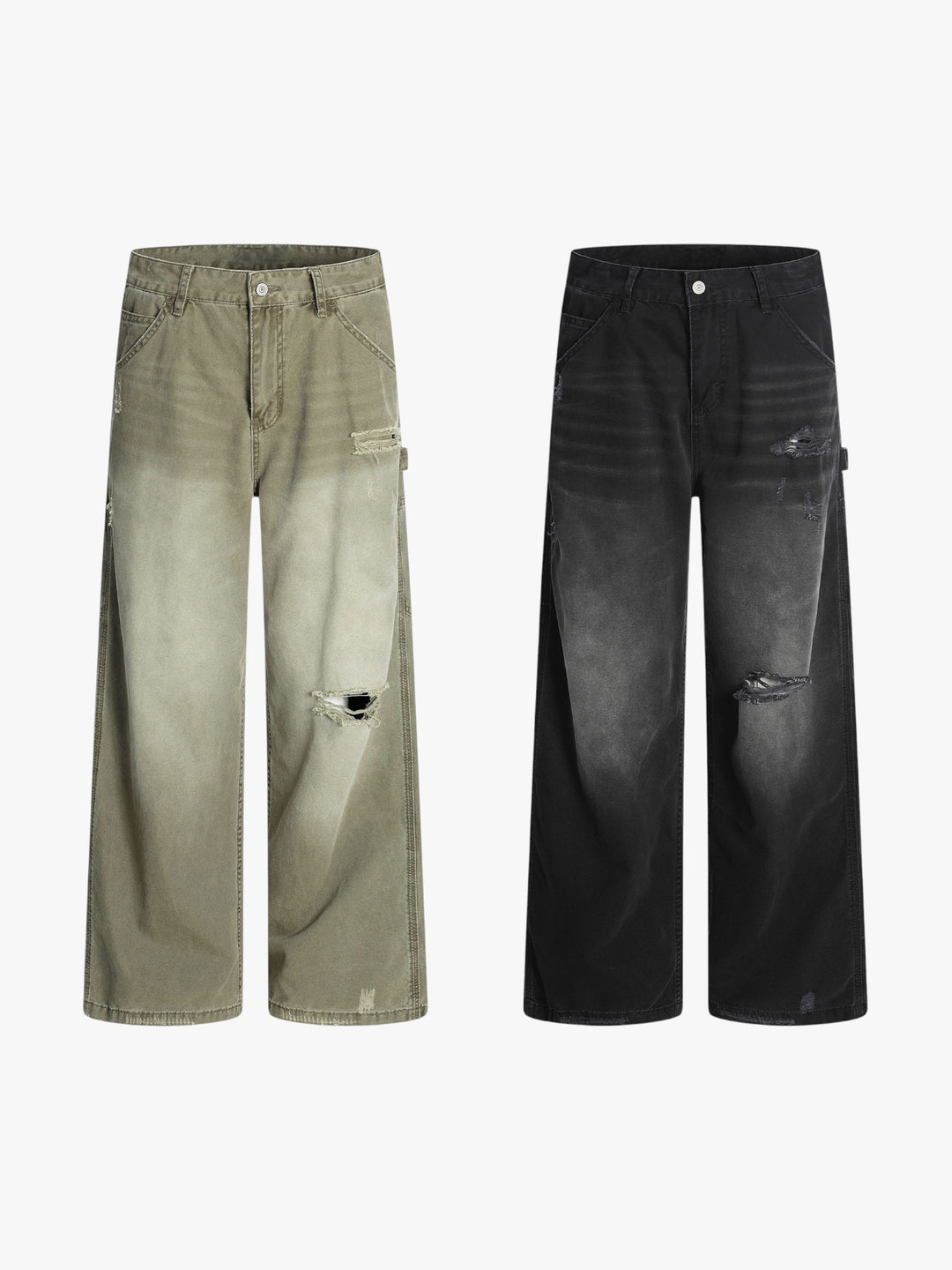 GKIKZ DOUBLE STRAP FRAYED PATCHWORK BAGGY JEANS