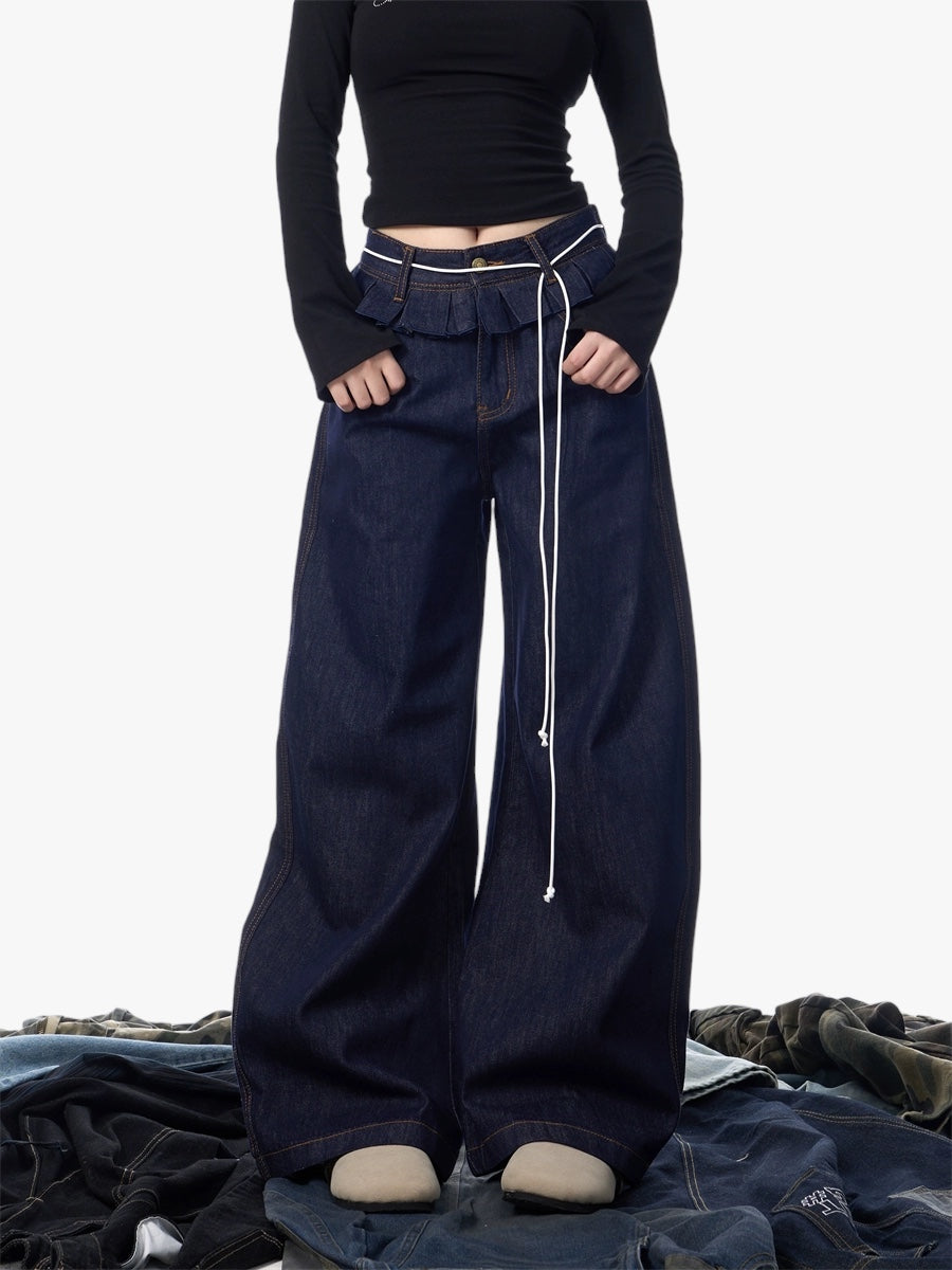 GKIKZ RETRO SCIMITAR ALL-MATCH DRAPE WIDE LEG JEANS