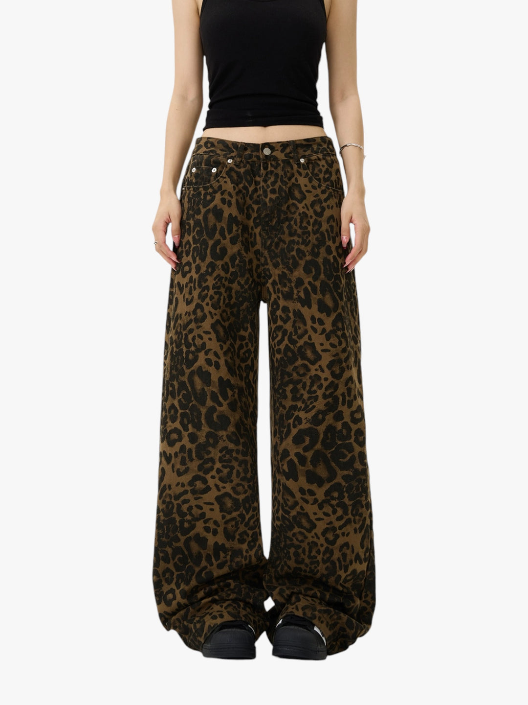GKIKZ VINTAGE LEOPARD PRINT BAGGY JEANS
