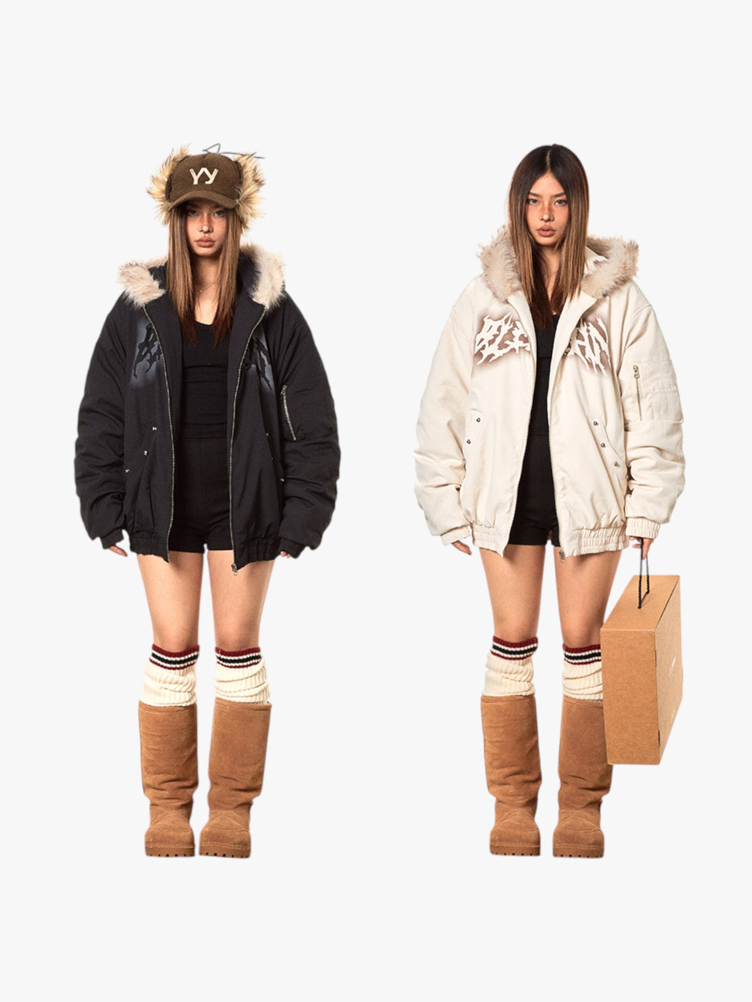 GKIKZ STORMFADE OVERSIZED FUR HOOD JACKET