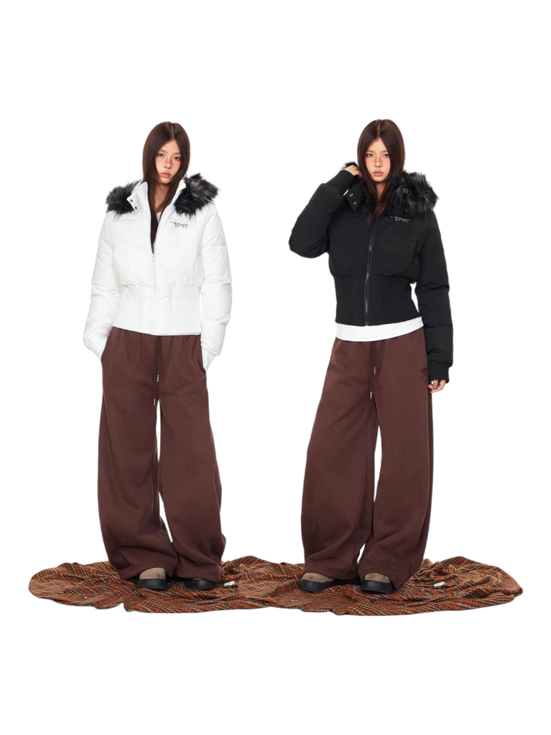 GKIKZ MOUNTAIN CARVING THICK COTTON PADDED FUR COLLAR JACKET