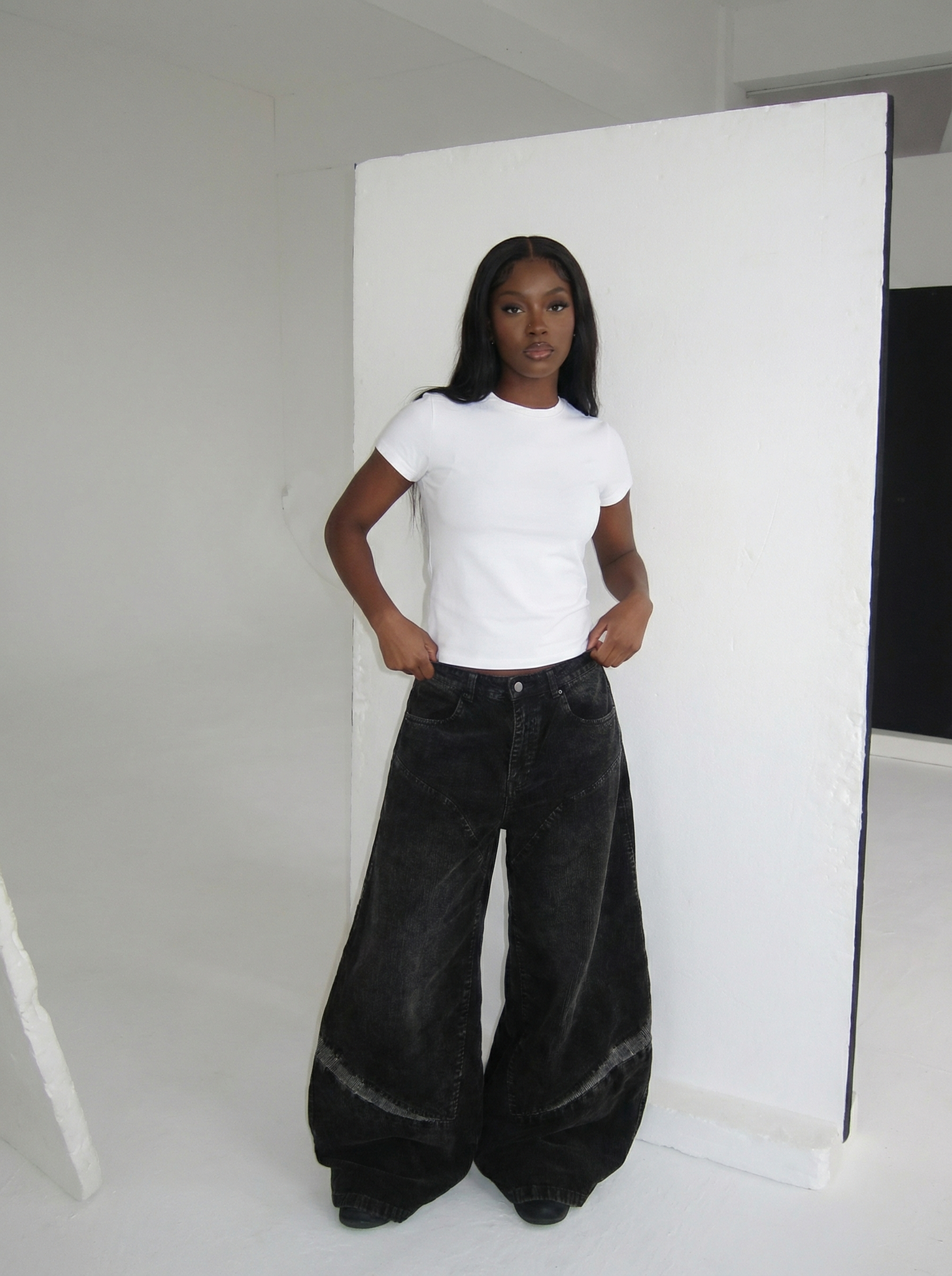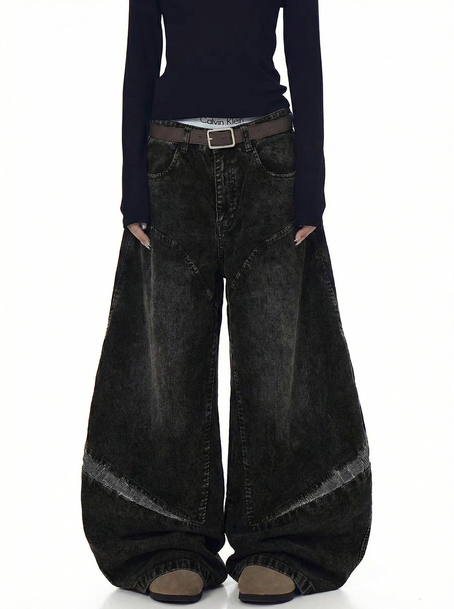 A bold fusion of volume, symmetry, and washed-out attitude. Crafted from heavyweight cotton corduroy, these pants deliver a structured yet relaxed silhouette, flaring out into an exaggerated wide-leg shape that commands attention.