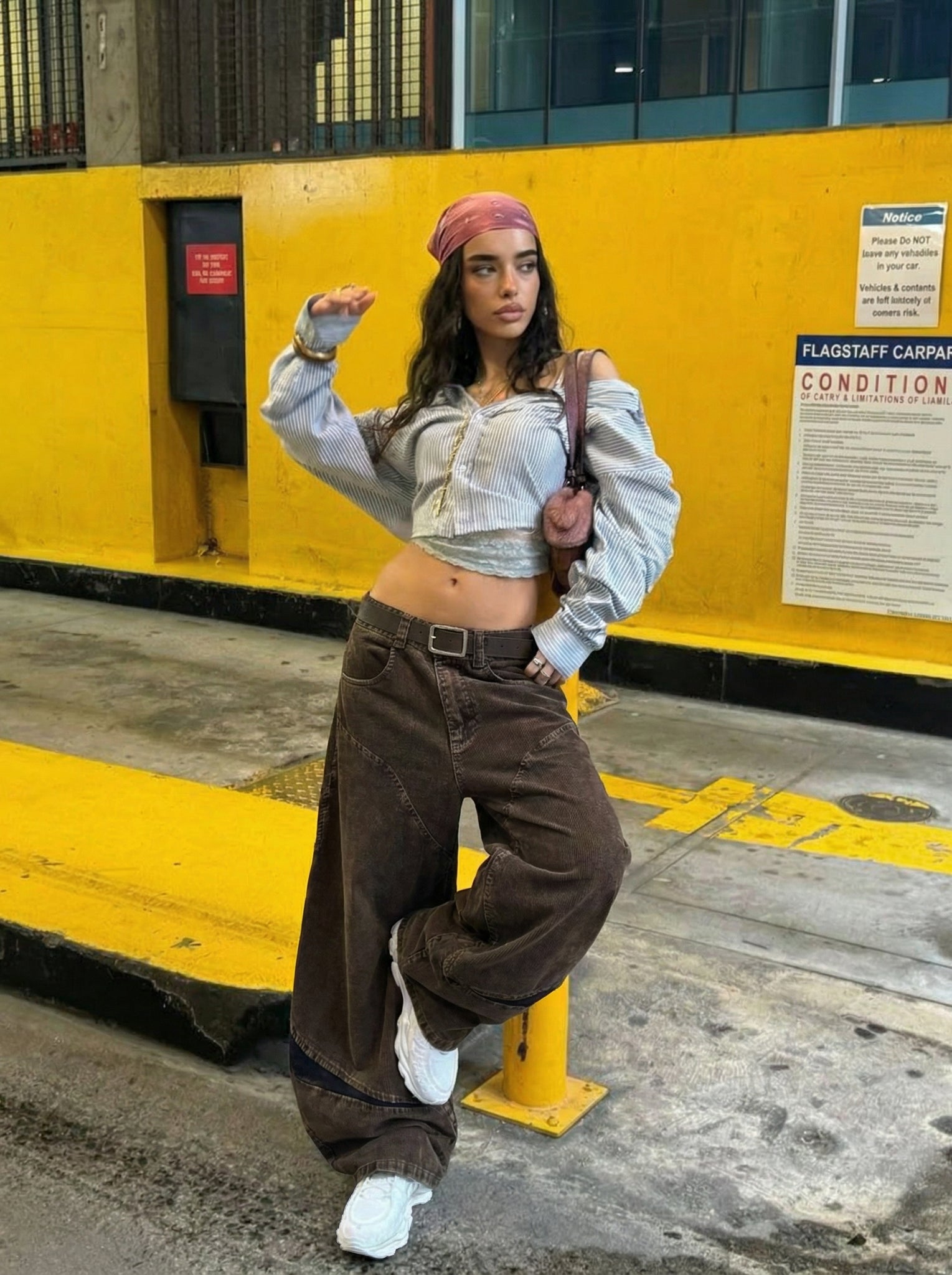 - Mid-rise waist with belt loops
