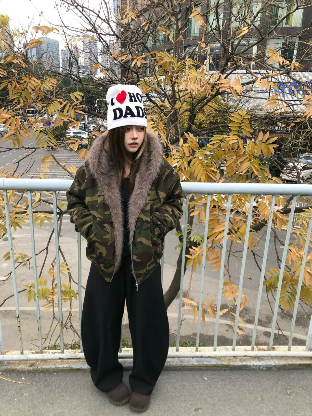 GKIKZ MOUNTAIN CARVING THICK COTTON PADDED FUR COLLAR JACKET