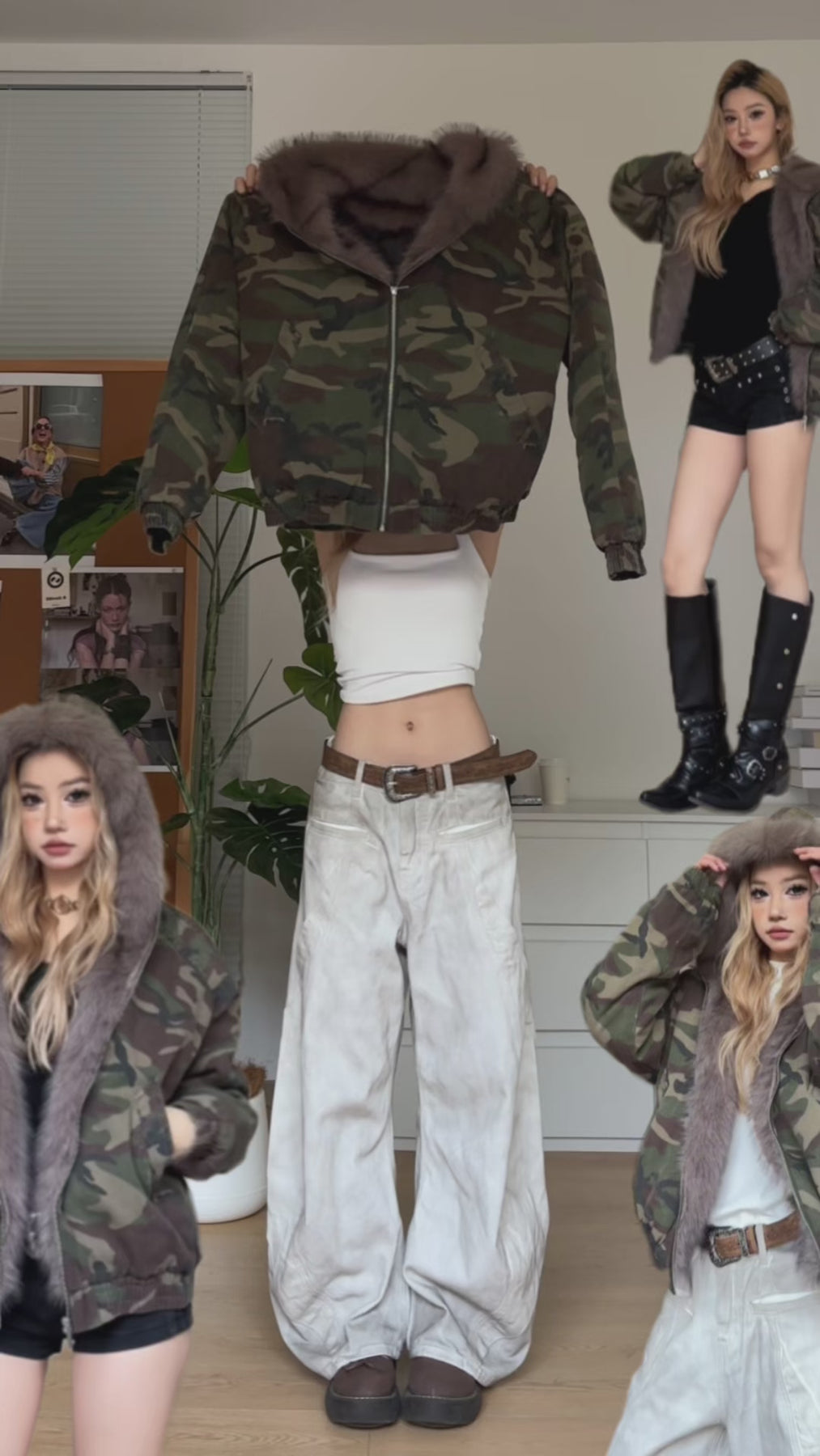 This unisex jacket features a classic camouflage pattern complemented by a luxurious faux fur-lined hood, perfect for keeping you warm during cold outdoor adventures.