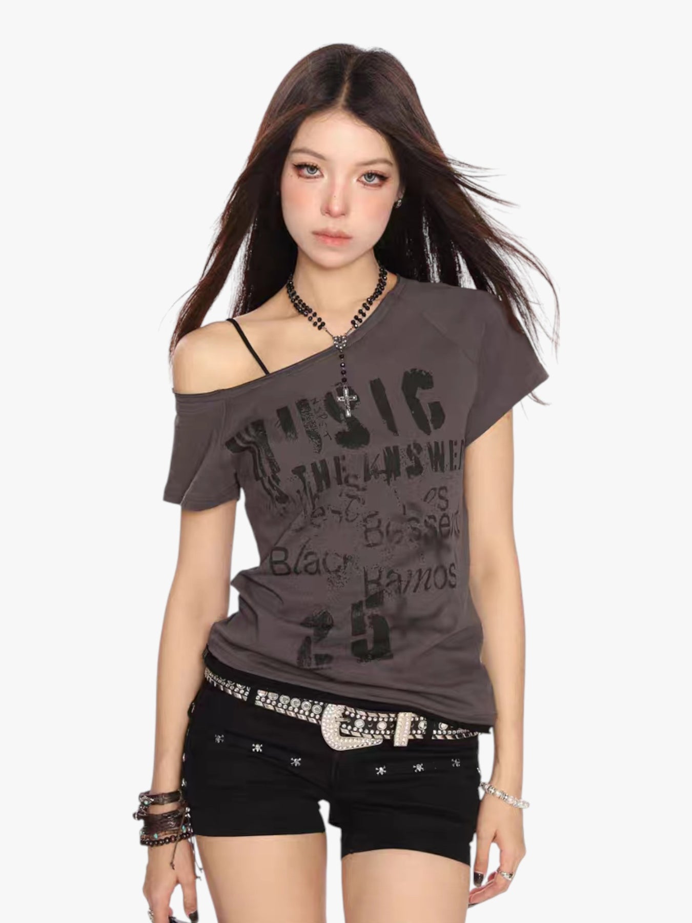 GKIKZ "MUSIC IS THE ANSWER" OFF-SHOULDER TEES