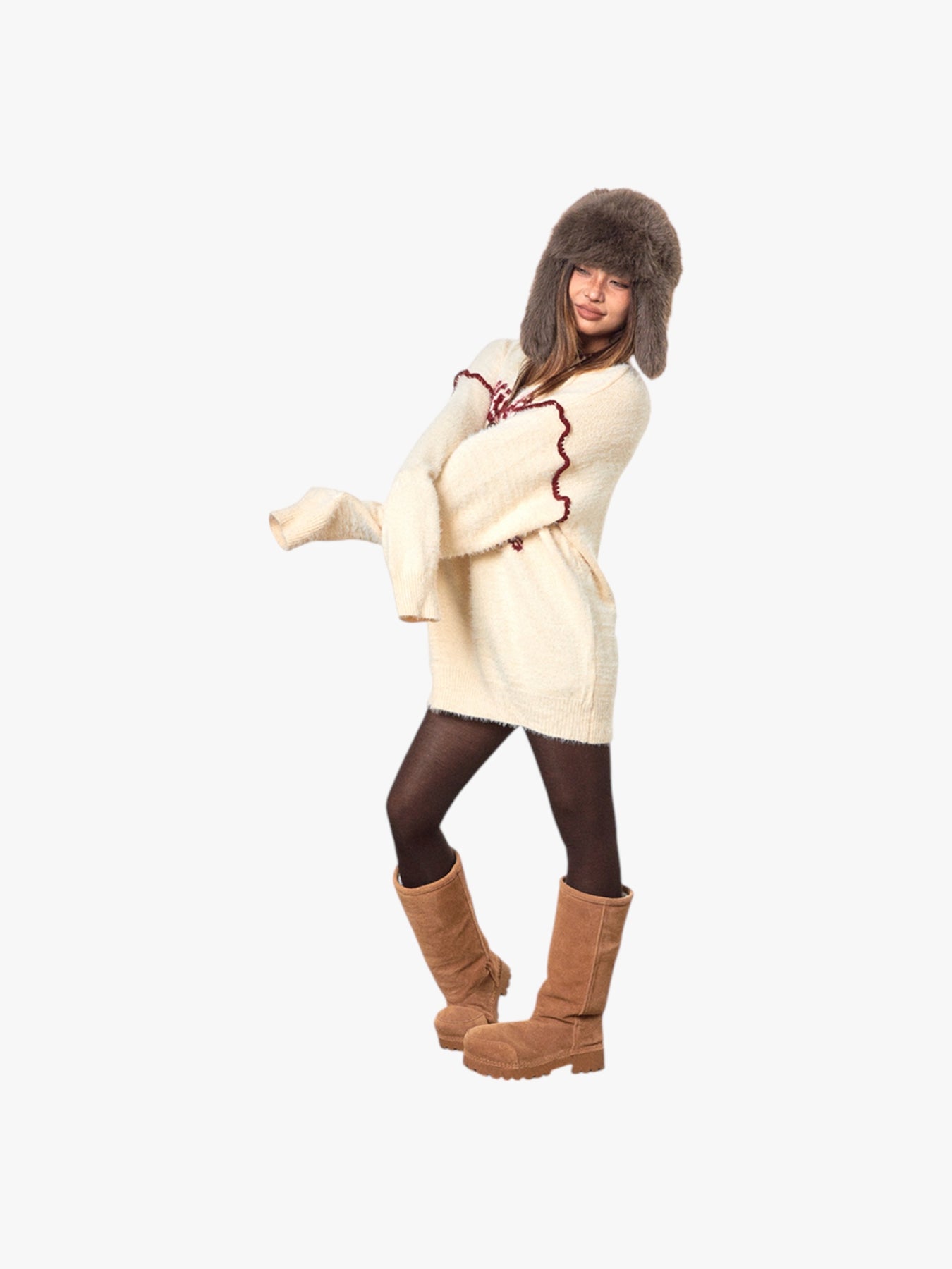 Stay cozy and stylish with this feeling good knit oversized sweater. Featuring bold embroidered lettering and a soft, plush texture, this sweater combines comfort with a chic streetwear aesthetic. Perfect for layering on chilly days, it pairs effortlessly with jeans or wide-leg pants for a relaxed yet trendy look.