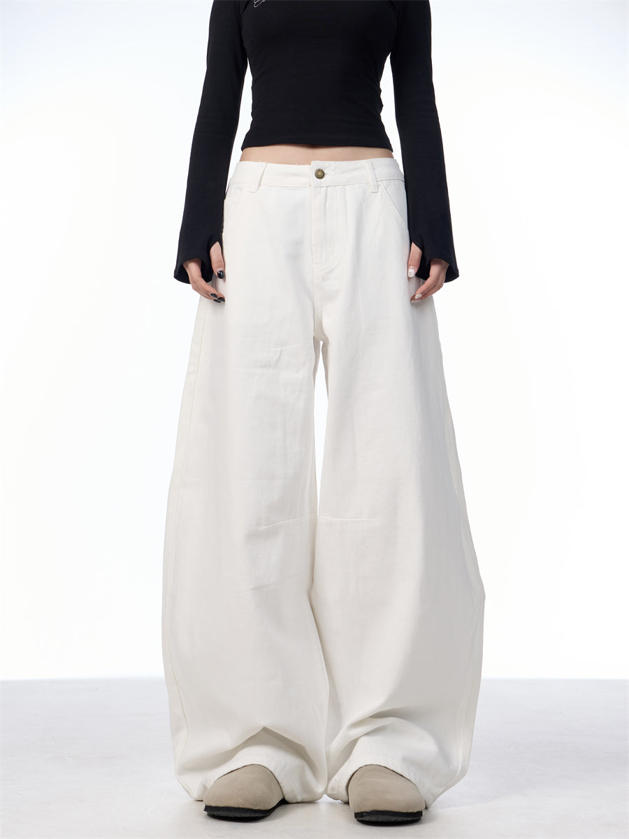 Featuring a clean white hue, these baggy pants exude minimalistic charm with a touch of elegance. The relaxed fit and soft material make them ideal for all-day comfort while maintaining a stylish edge.