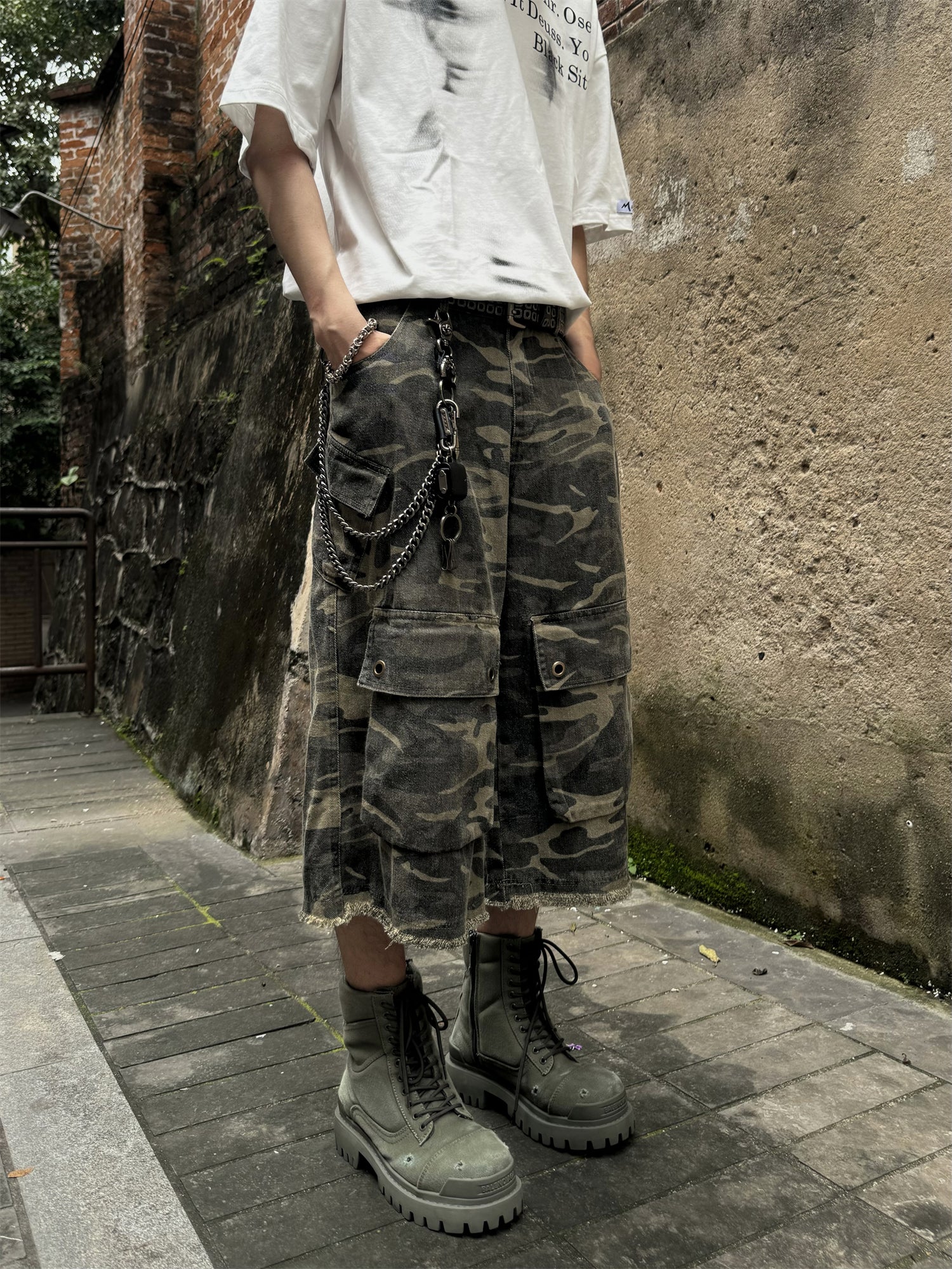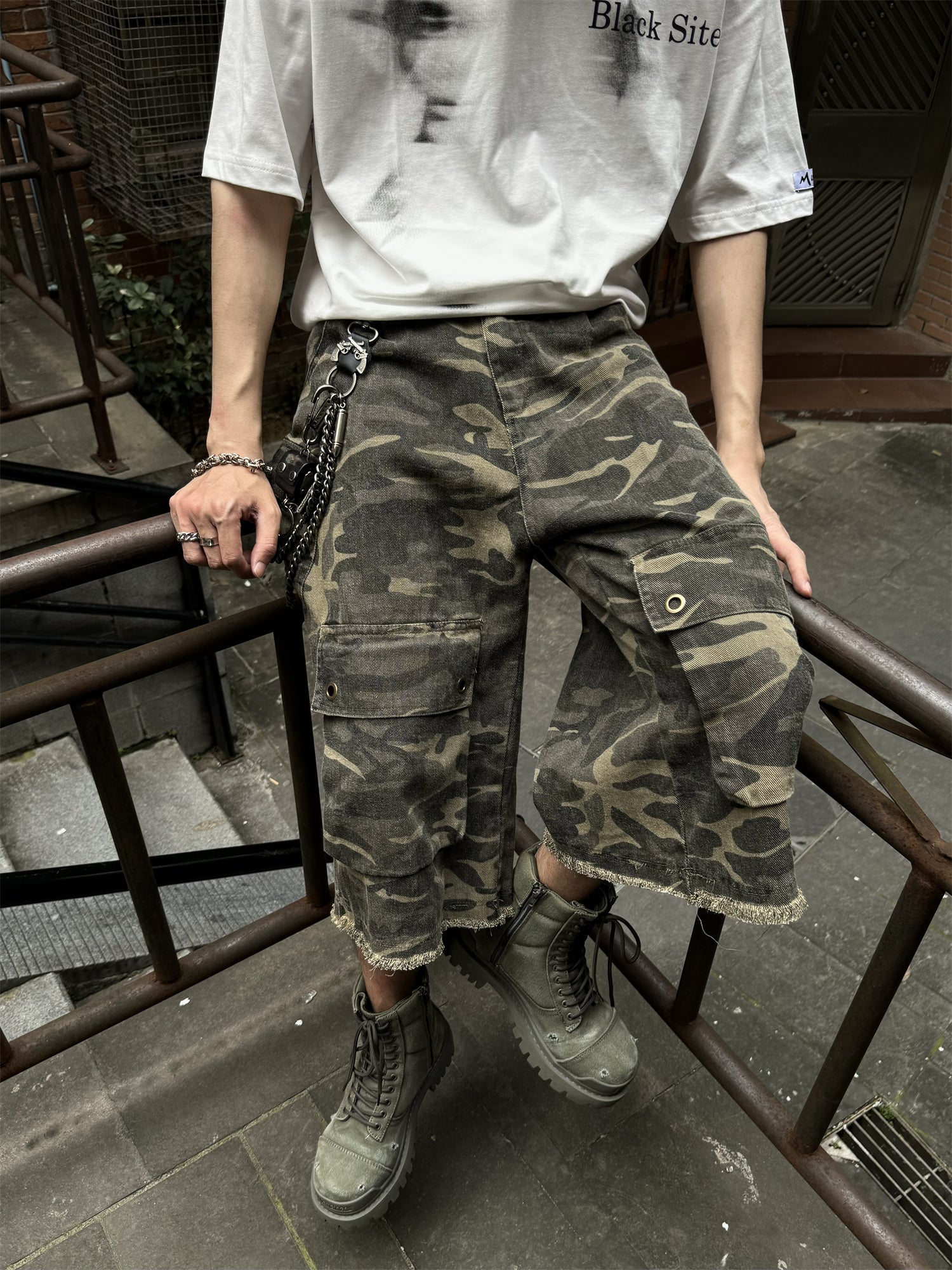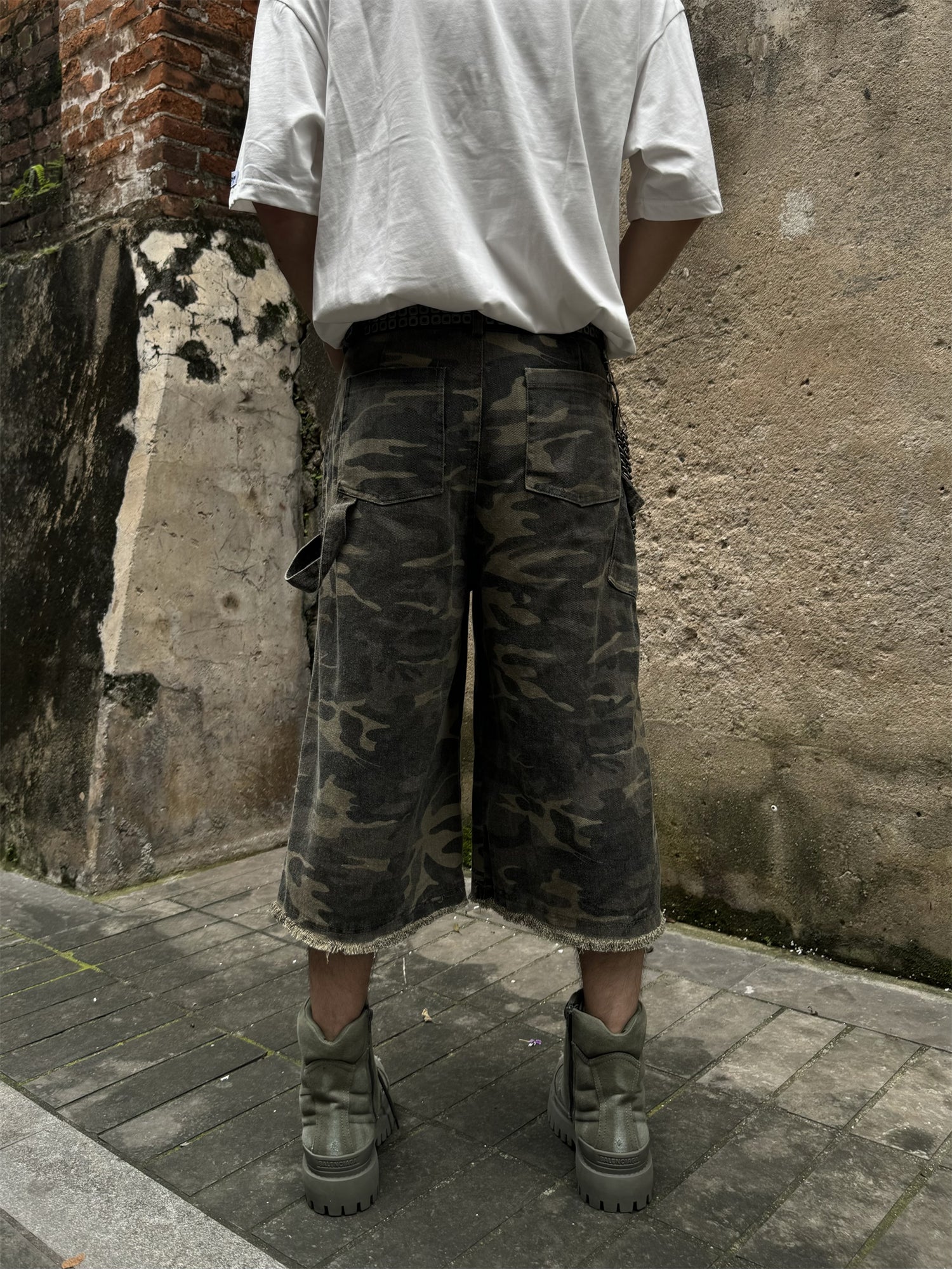 GKIKZ CAMOUFLAGE OVERALL RAW EDGE JORTS