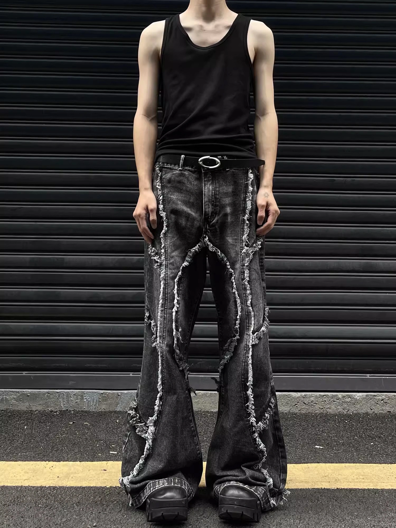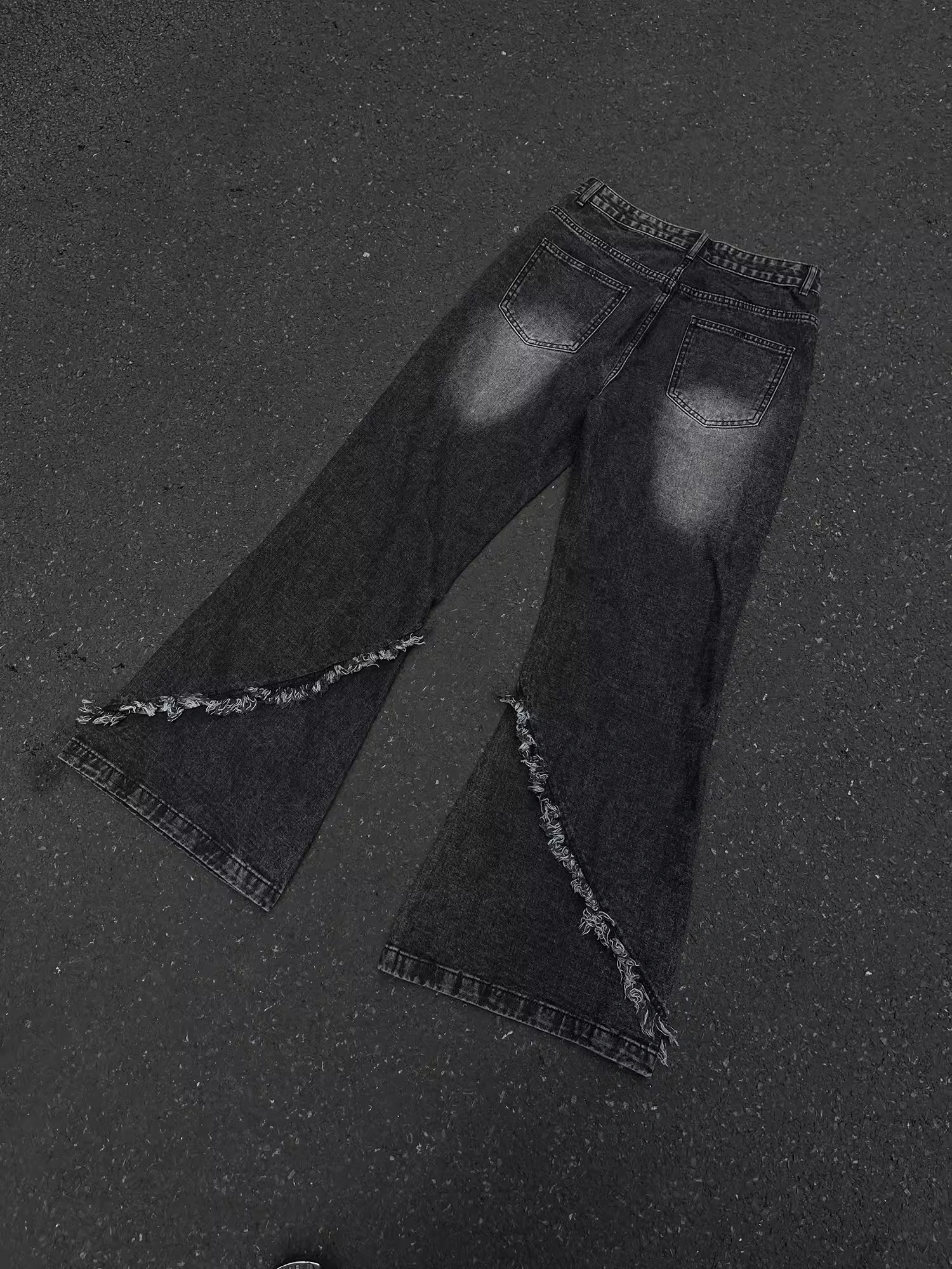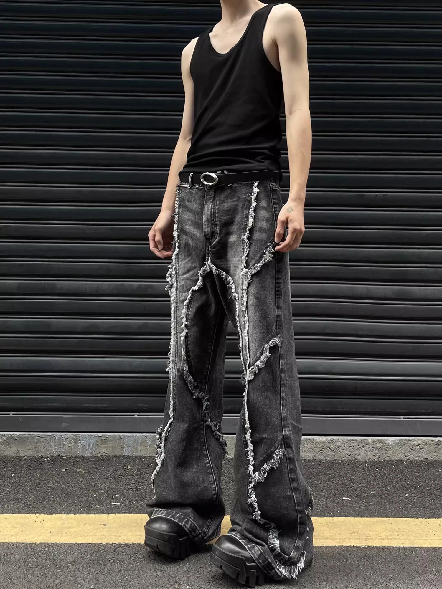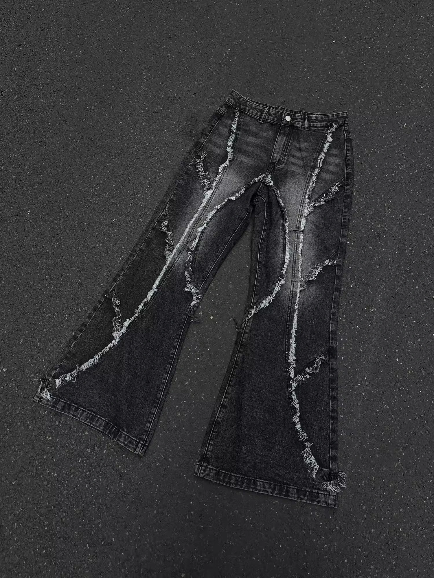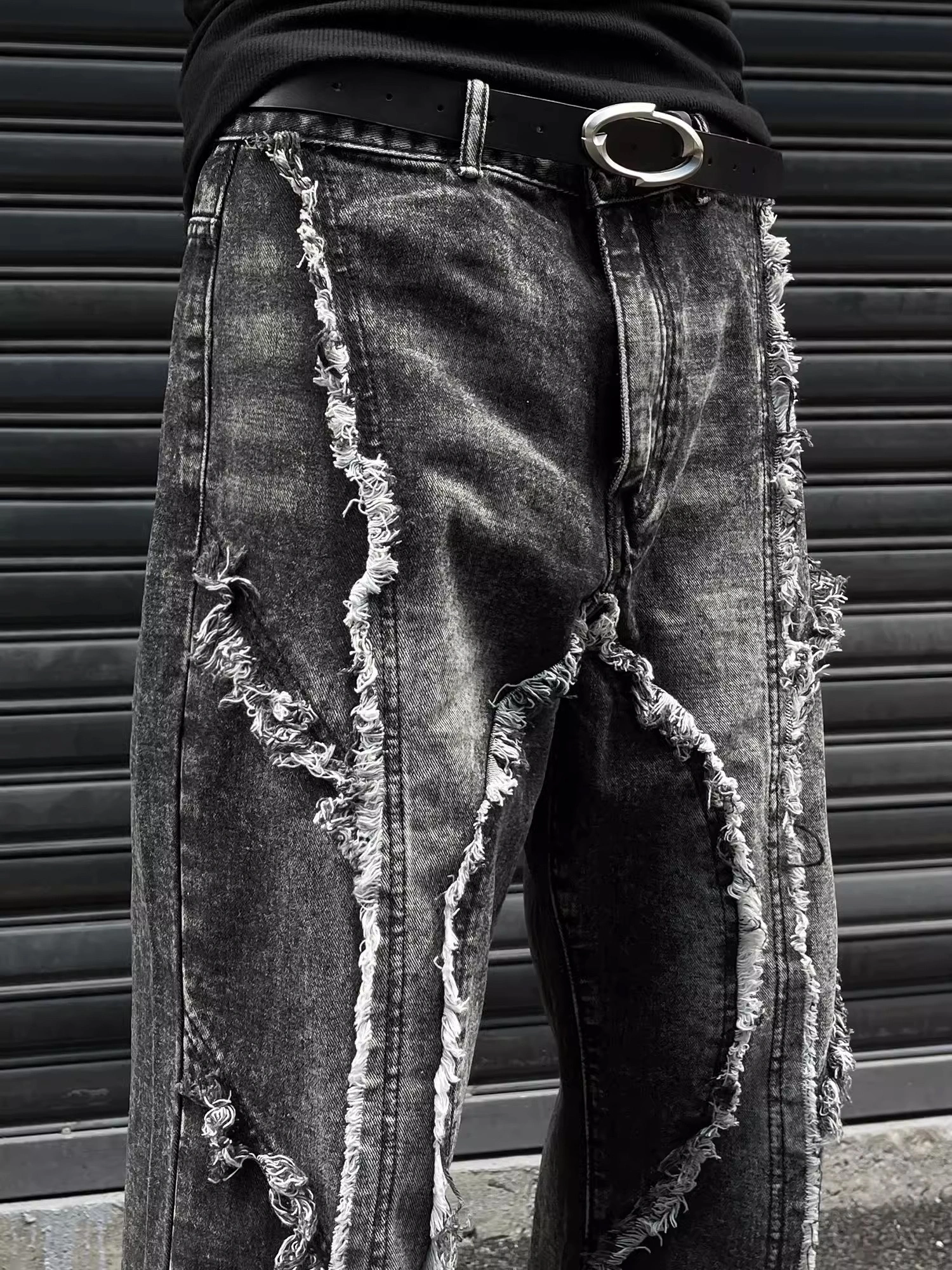 GKIKZ DECONSTRUCTED TESSEL RAW-EDGE BAGGY JEANS