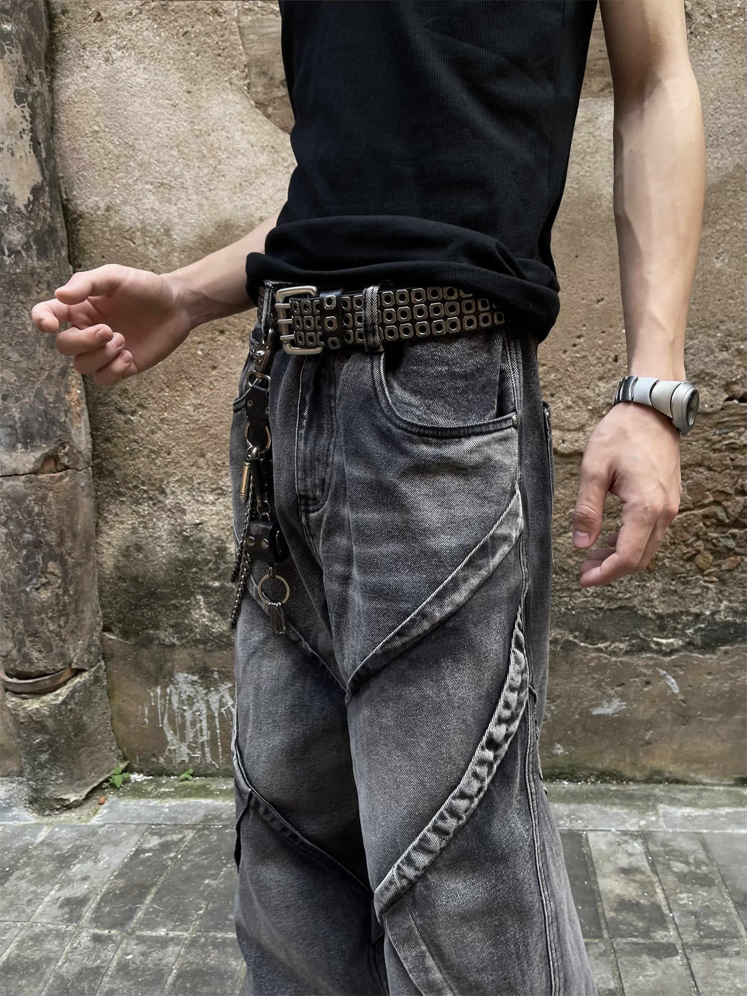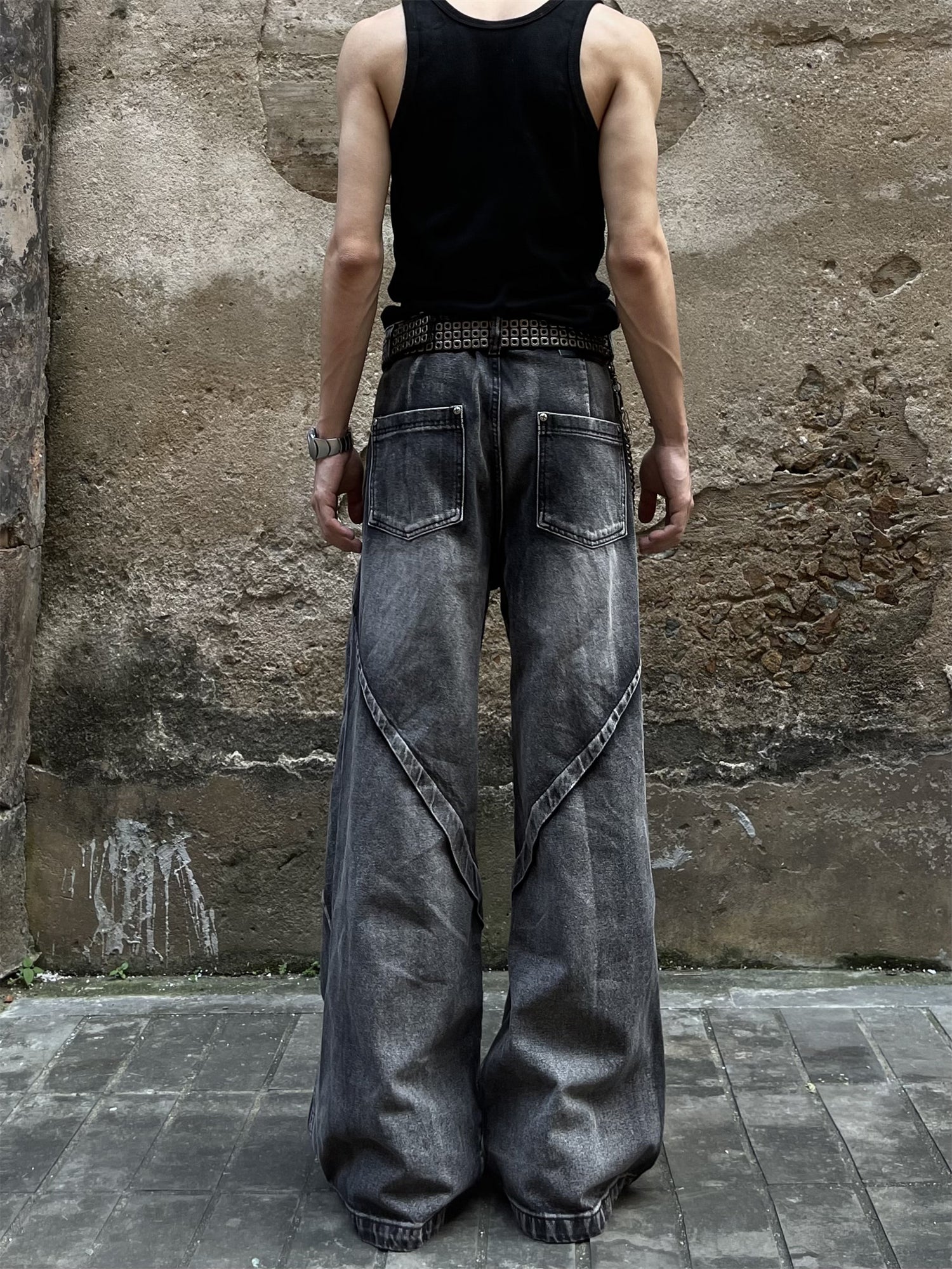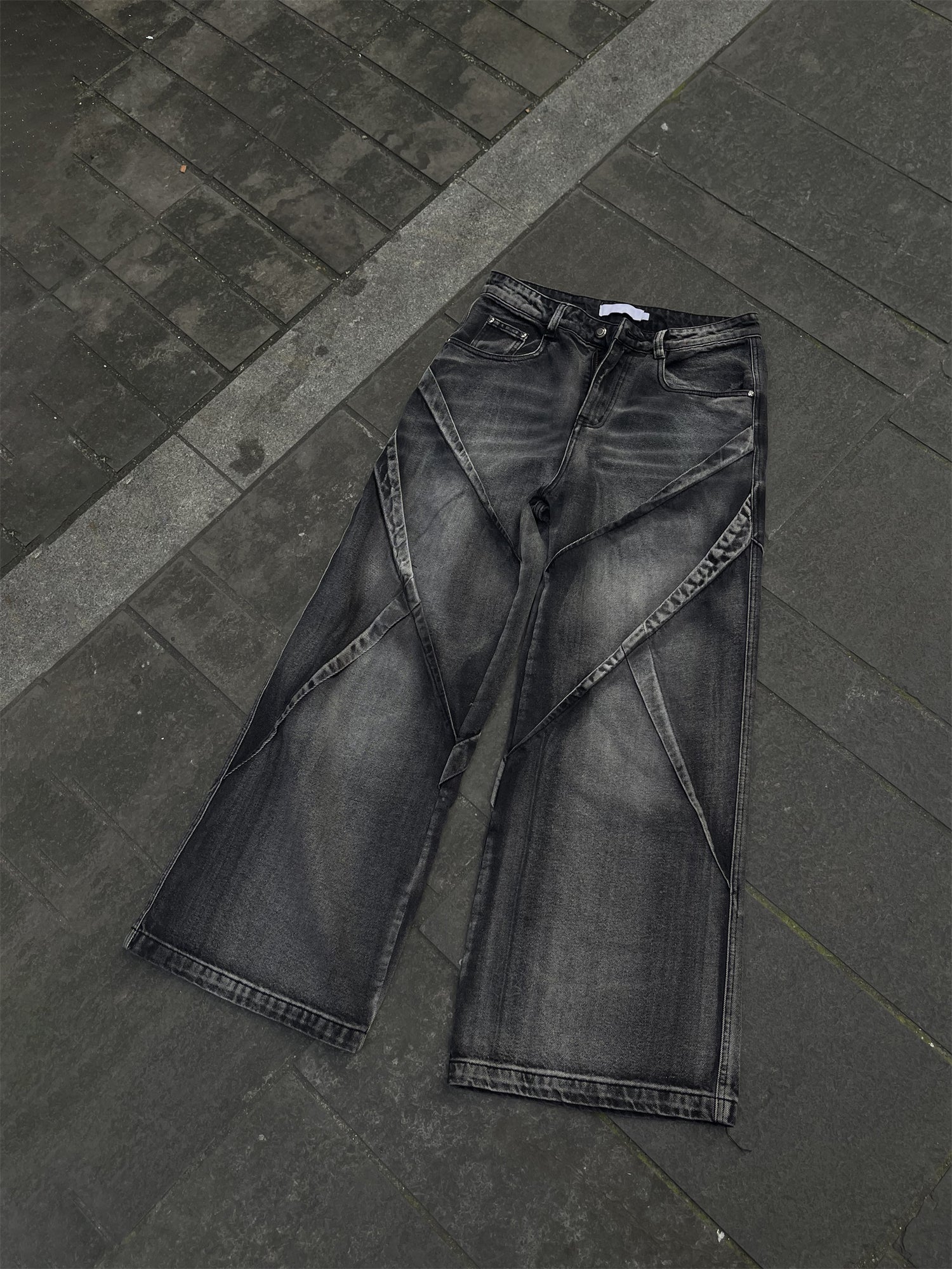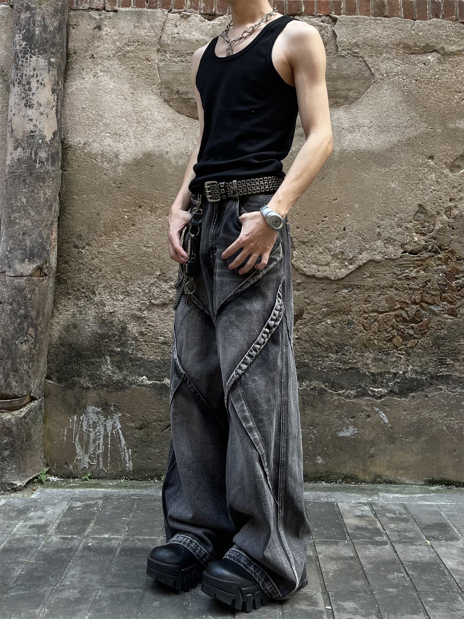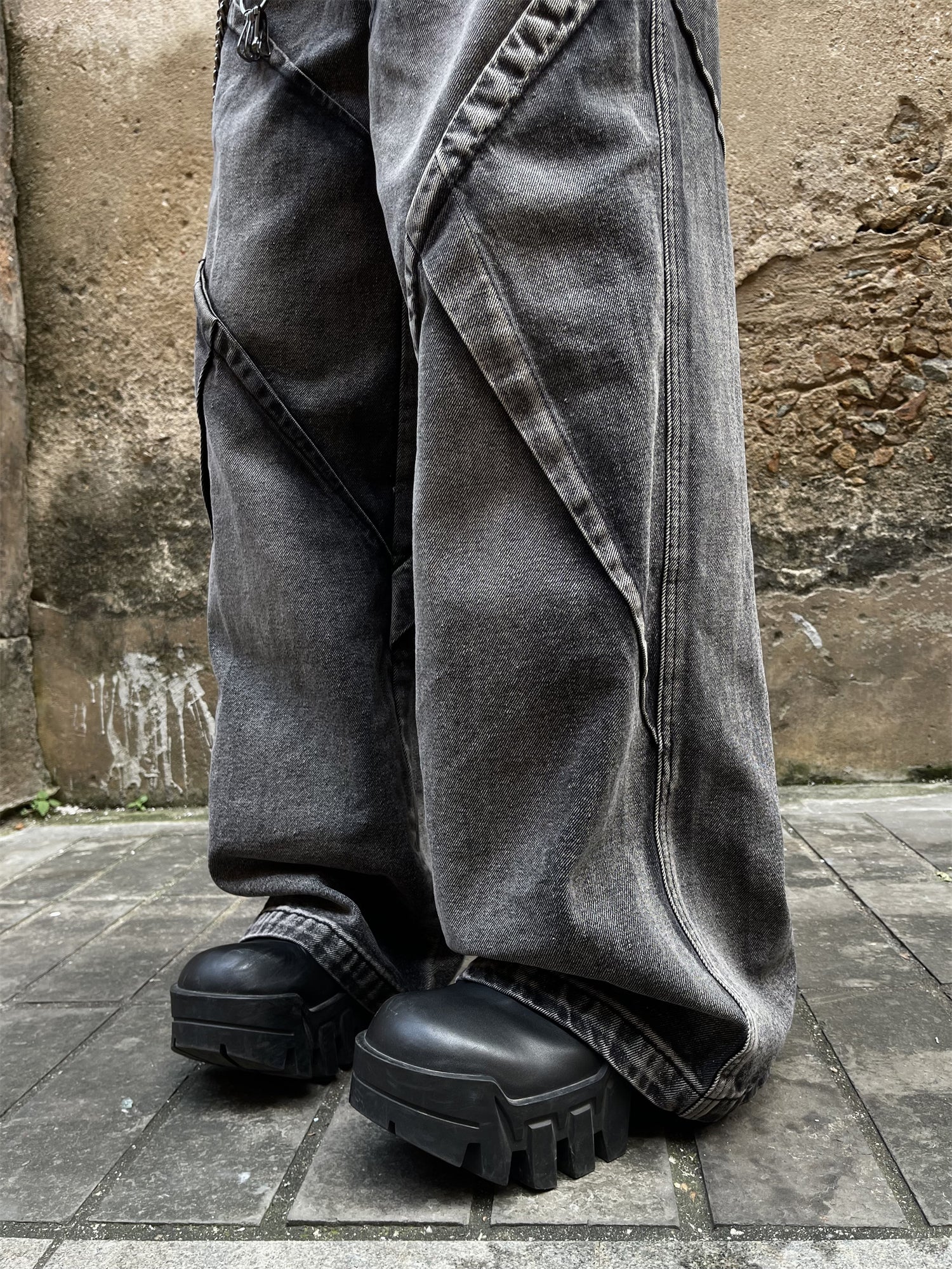 GKIKZ HEAVY WASHED DECONSTRUCTED DENIM BAGGY JEANS