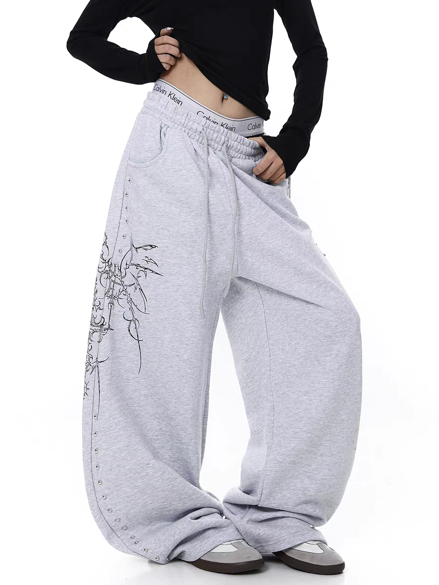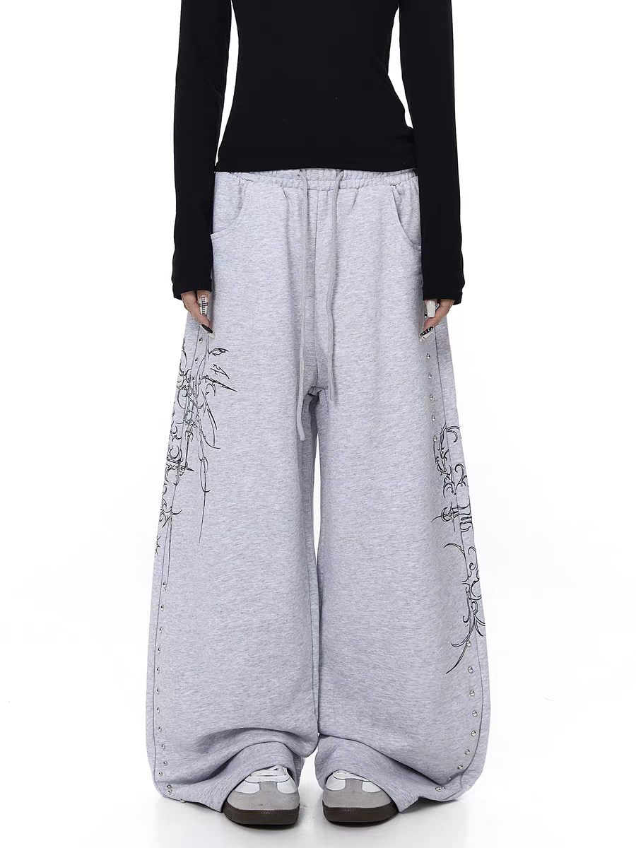 Perfect for the fashion-forward individual who isn't afraid to make a statement, these mid-rise joggers combine comfort with attitude. The unique thorn print adds a rebellious edge while the drawstring closure ensures a customizable, secure fit. Designed with a relaxed straight-leg silhouette and slight stretch, these joggers move with you throughout your day, making them ideal for casual outings, creative workspaces, or urban adventures. The premium cotton construction delivers breathable comfort that lasts from morning to night.