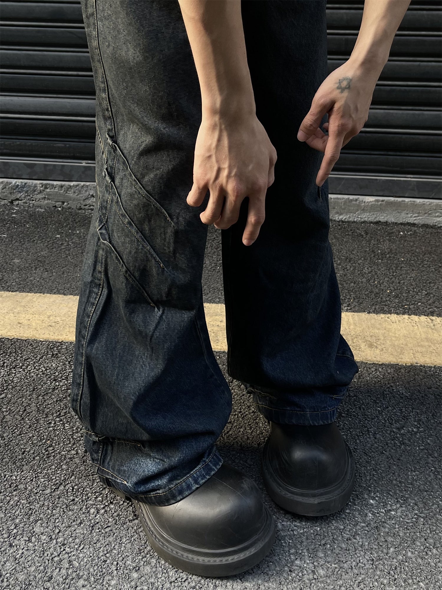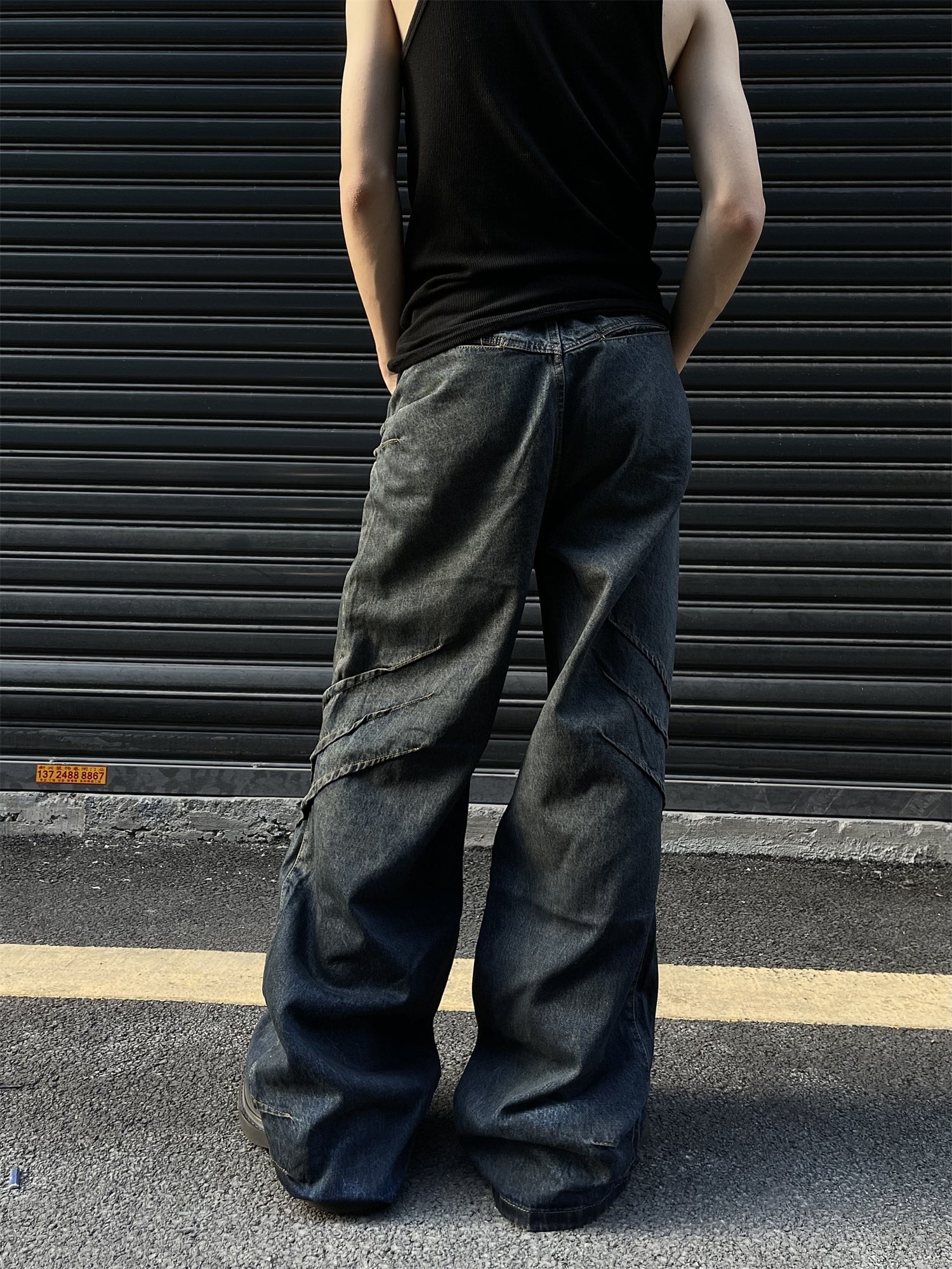 GKIKZ TRI-CLAW FAKE SLASHES BAGGY JEANS